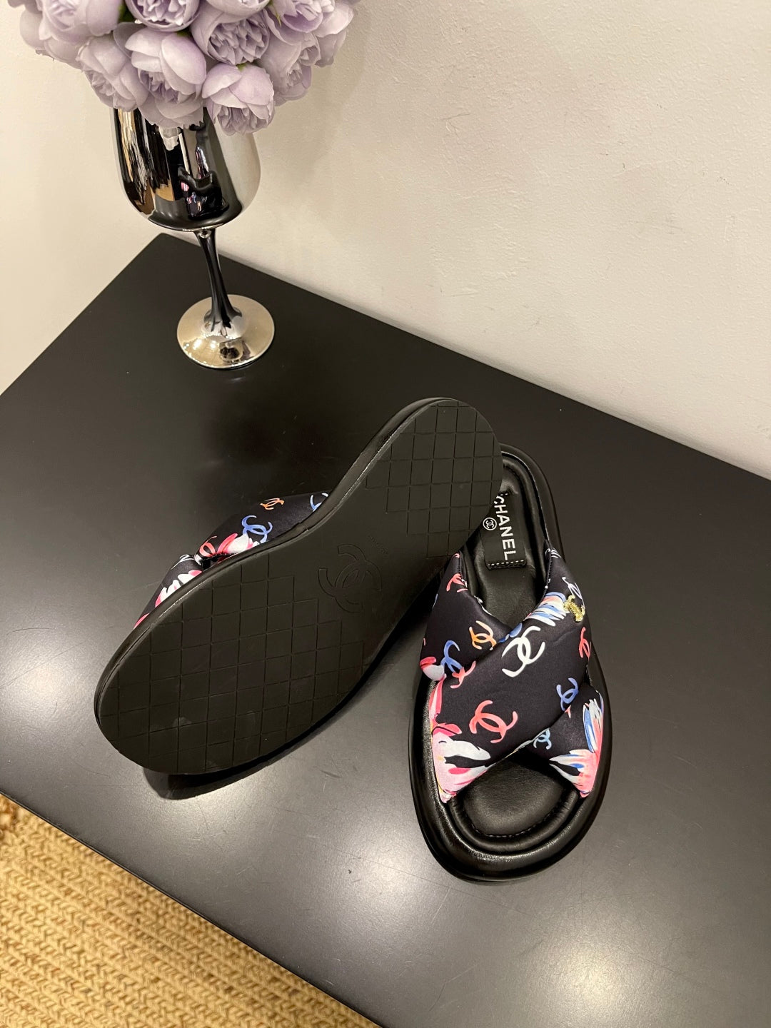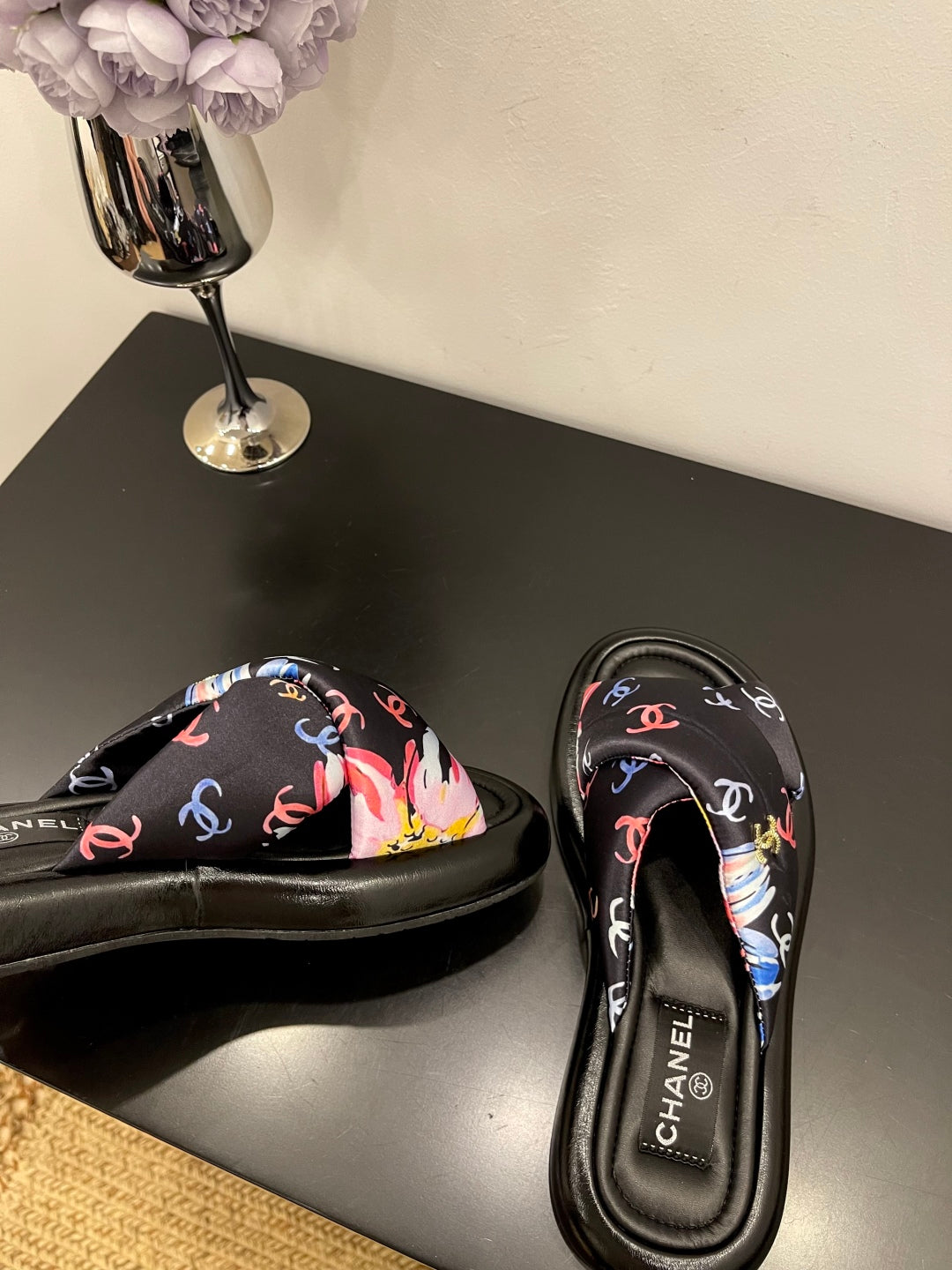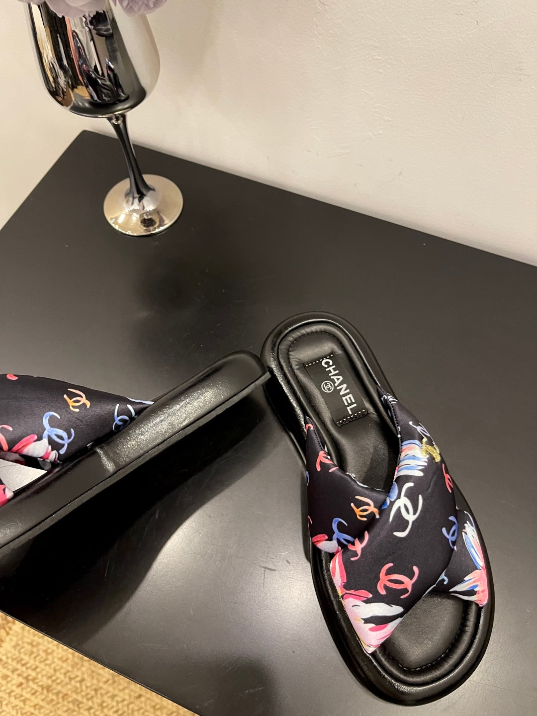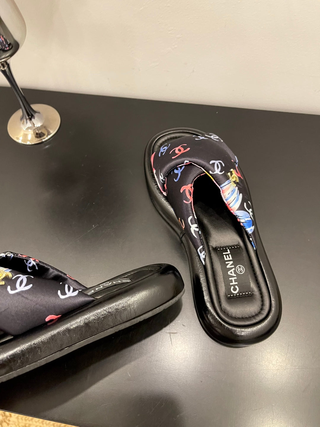CC 25 Platform Slide Black Cloth Sheepskin 334738