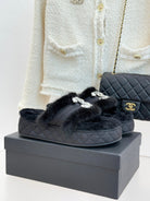CC slipper double C rhinestone buckle black wool 512051
