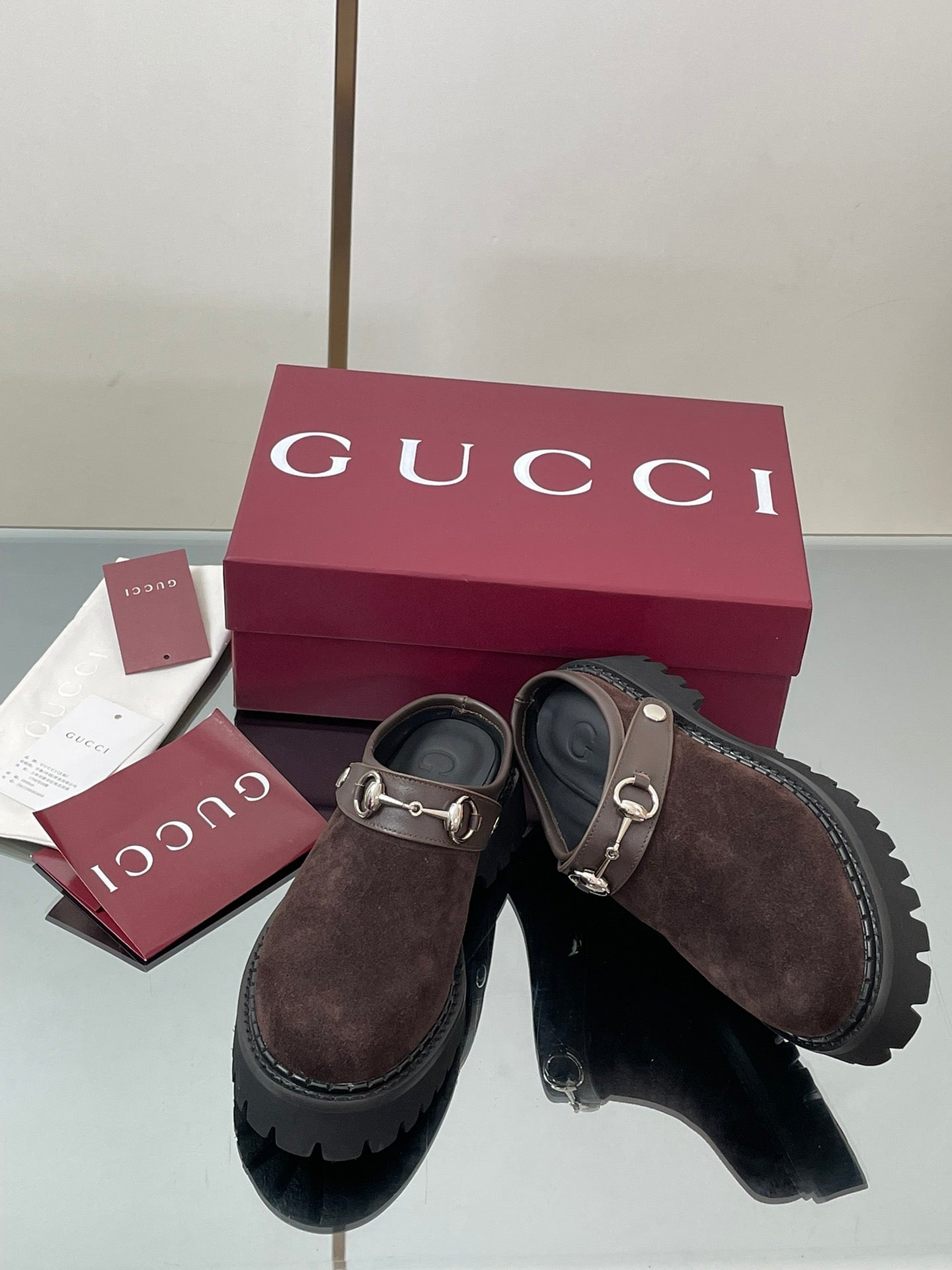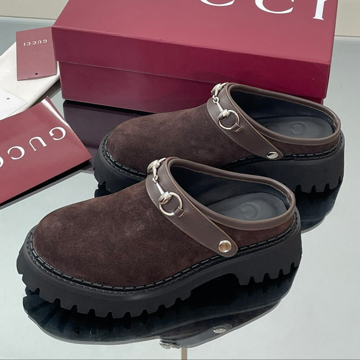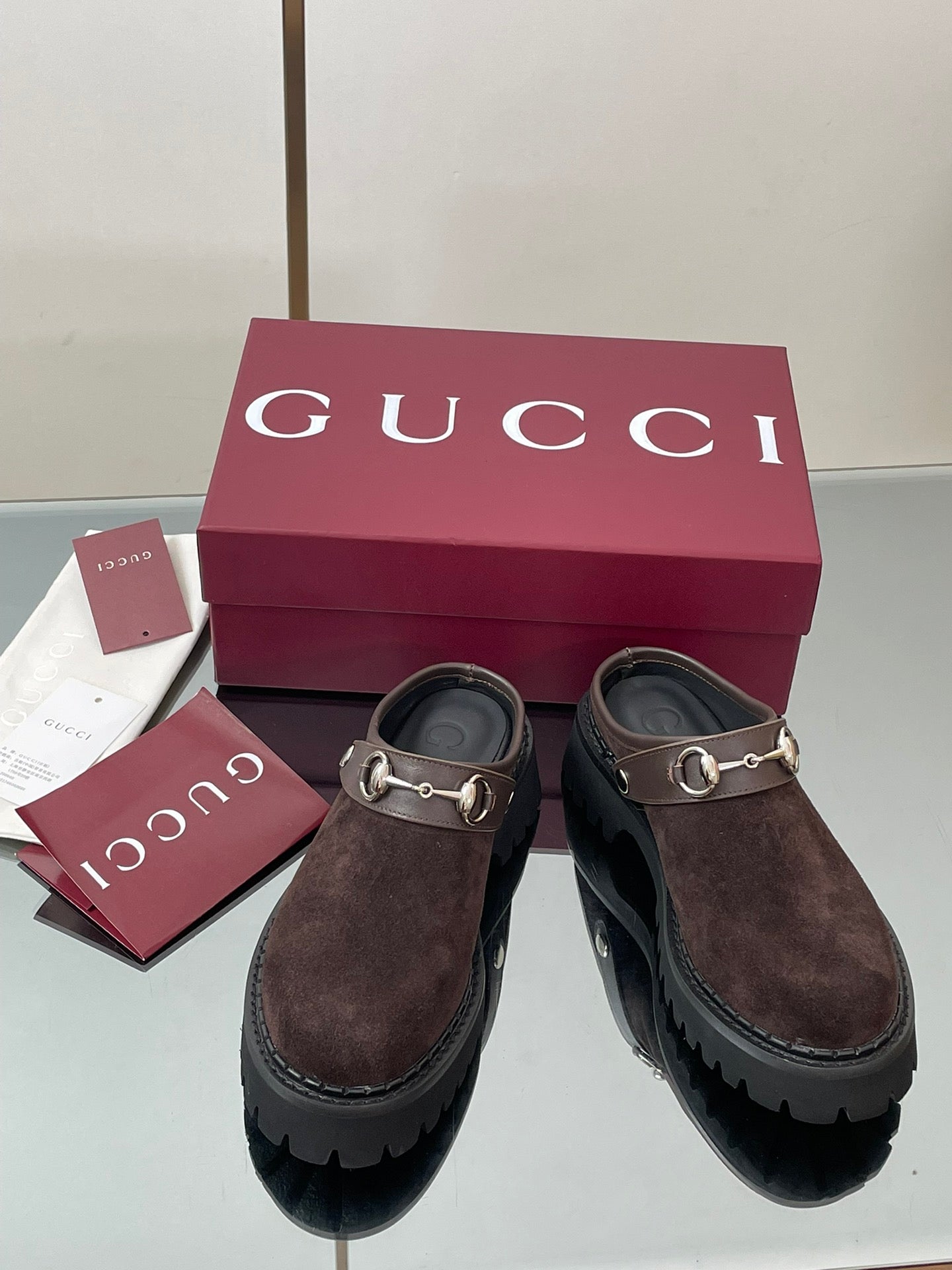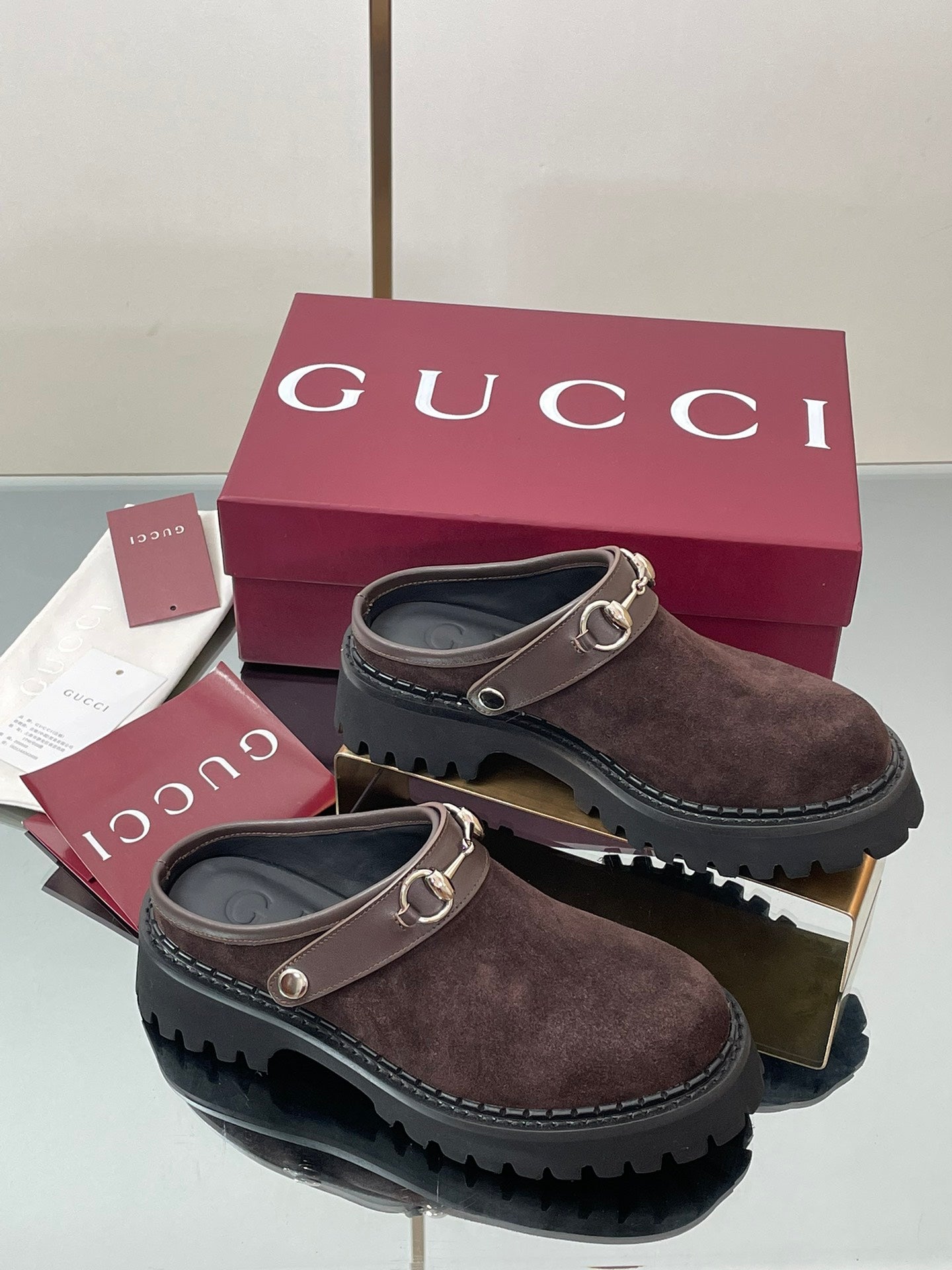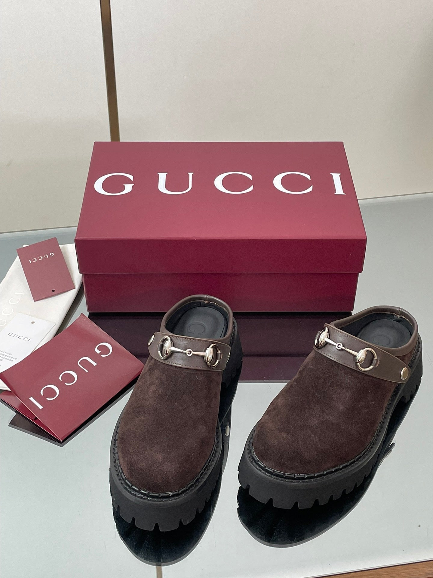 GC 25 Horsebit Mule Black Brown Cowhide Suede 174408