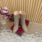Gucci 2025 Thick-heeled Square-toed Ankle Boots Beige Gold Sheepskin Fabric 498067