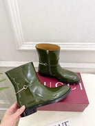 Gucci 25π¬π¬ horsebit ankle boots dark olive green patent calfskin