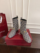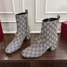 Gucci Horsebit Chunky Heel Ankle Boots Blue Ebony Cowhide Fabric 490558