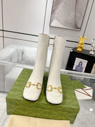Gucci Horsebit Square Toe Mid-heeled Ankle Boots White Cowhide 490536