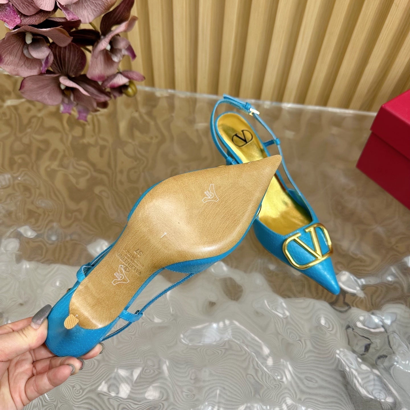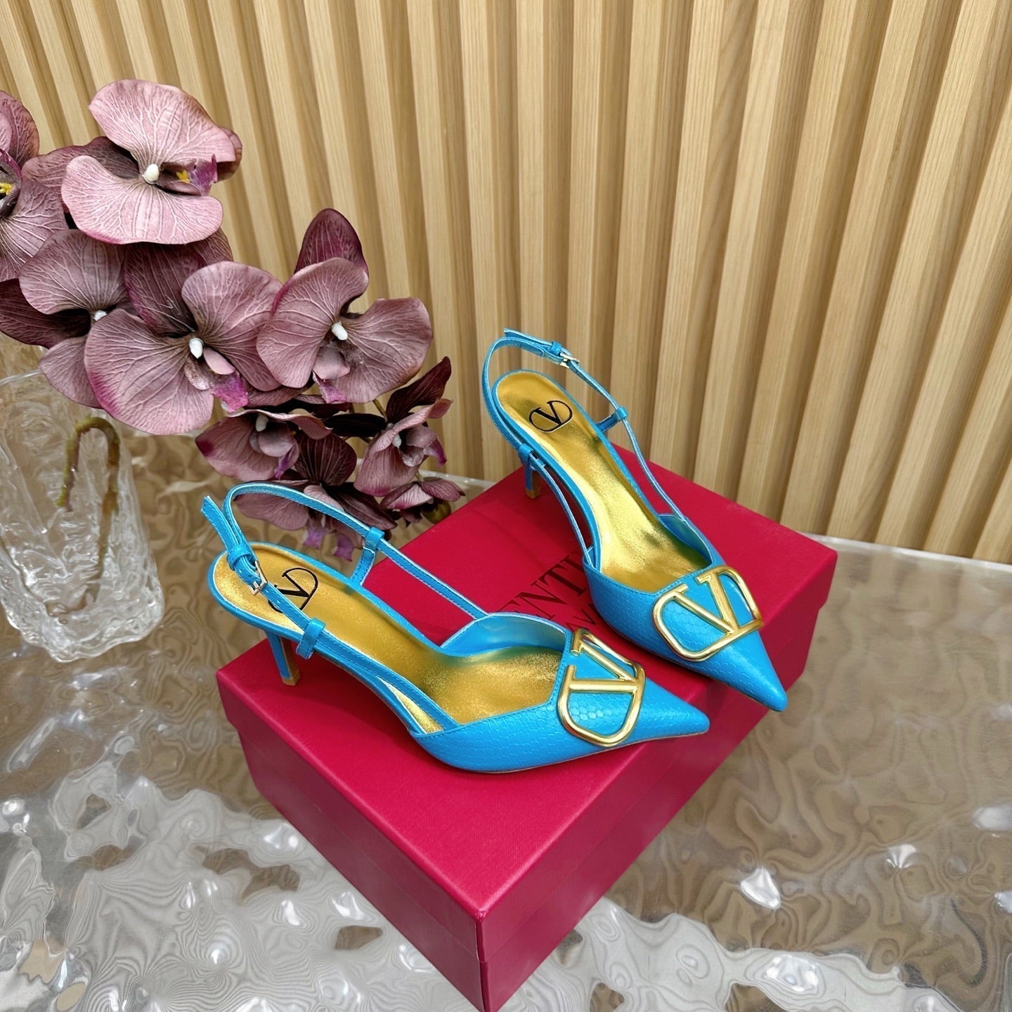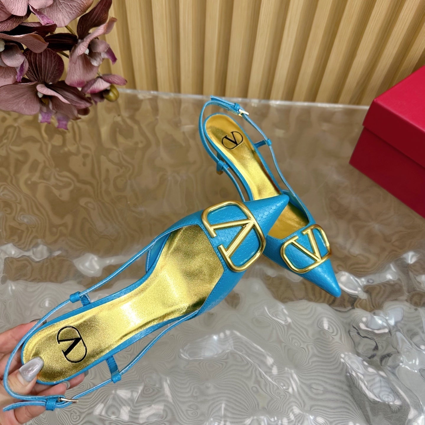 VT 25 Slingback Cerulean Blue Snakeskin Leather 325192