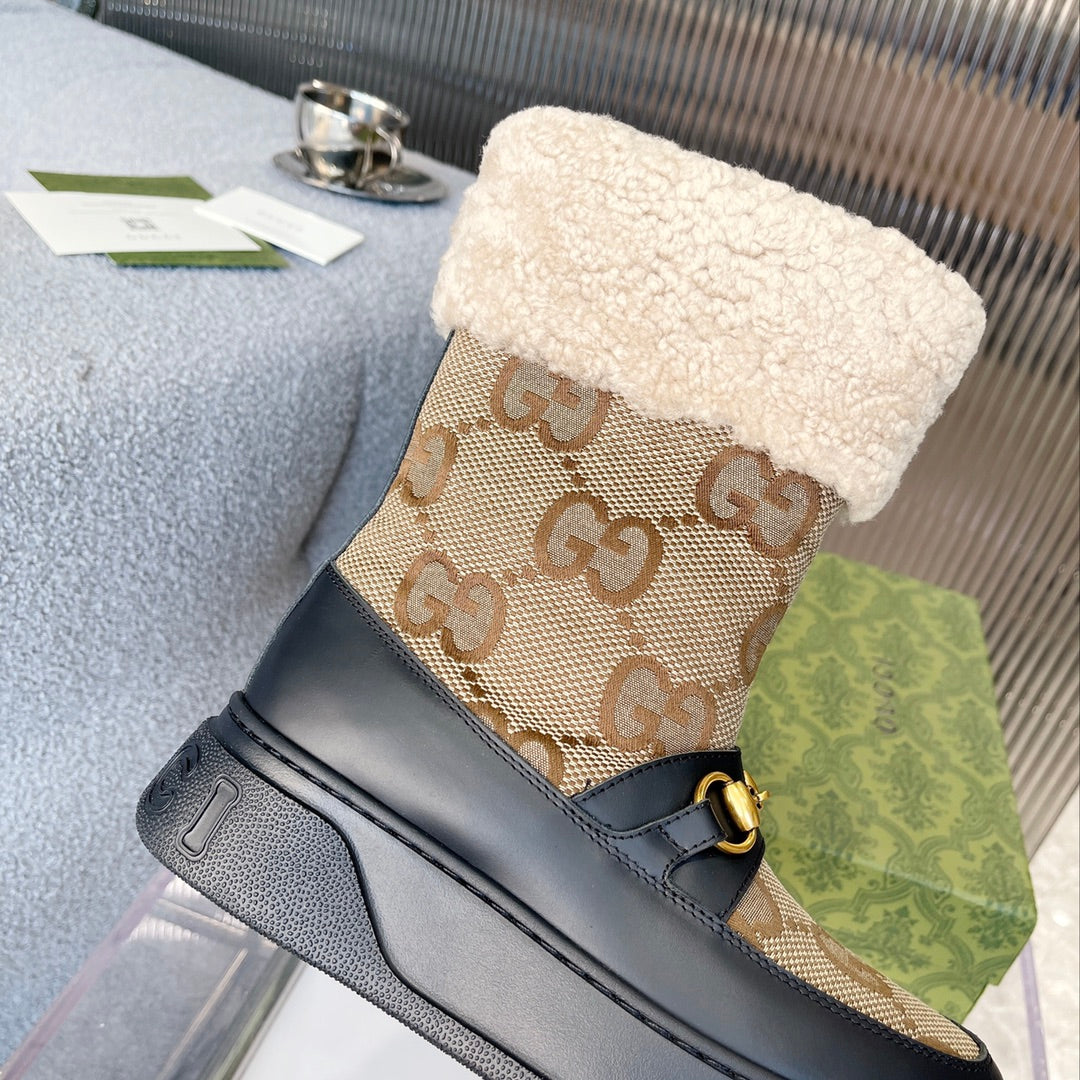 Gucci 2025 Boot Black Beige Sheepskin Wool 564789