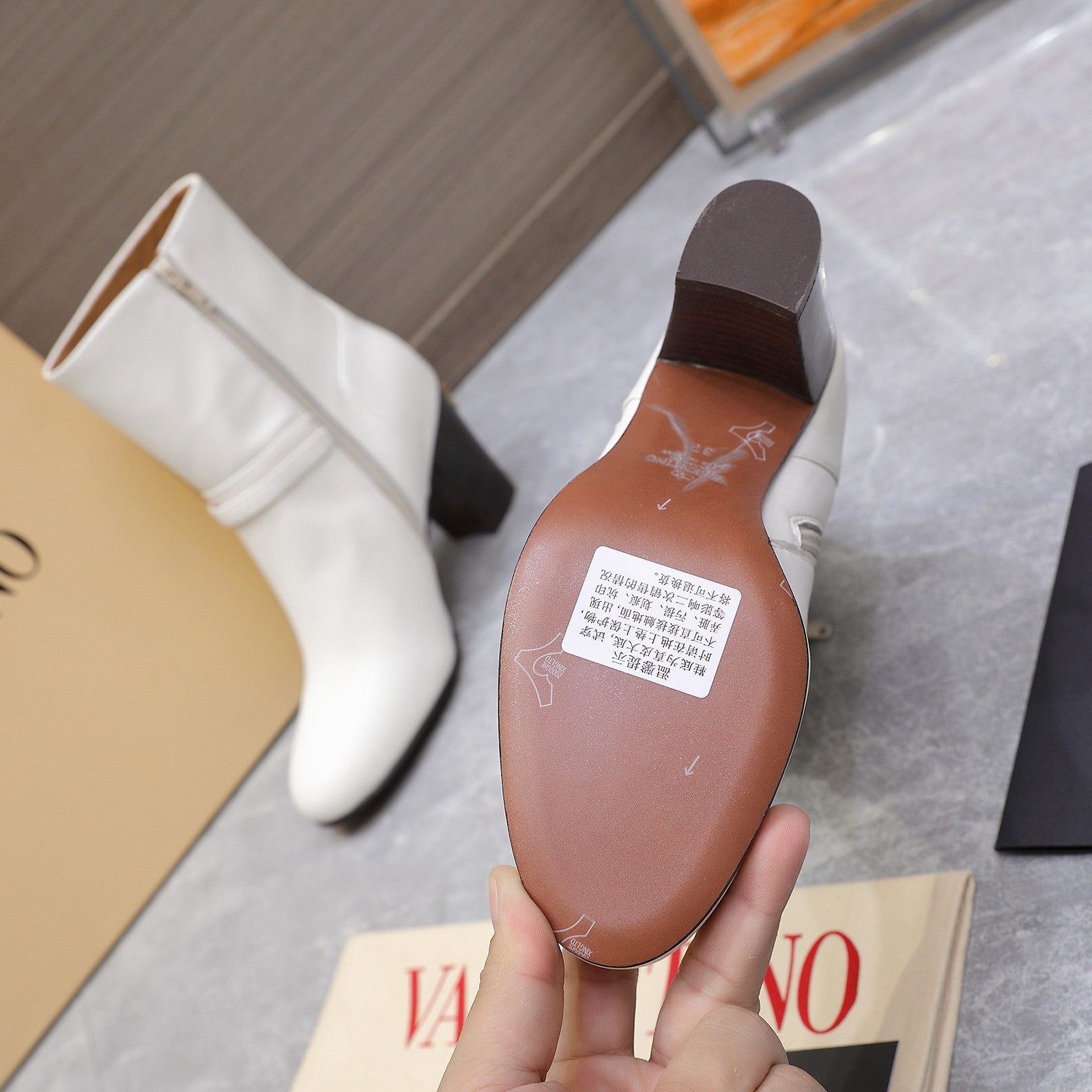 Valentino 2025 Bow Square Toe Zipper Ankle Boot White Brown Cowhide 549735