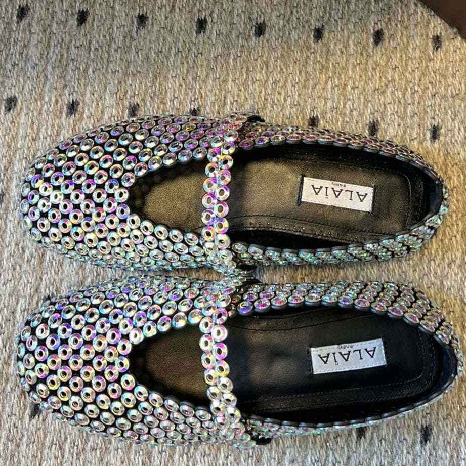 Alaia 25 Embellished Mary Jane Ballet Flats Multicolor Suede 303686