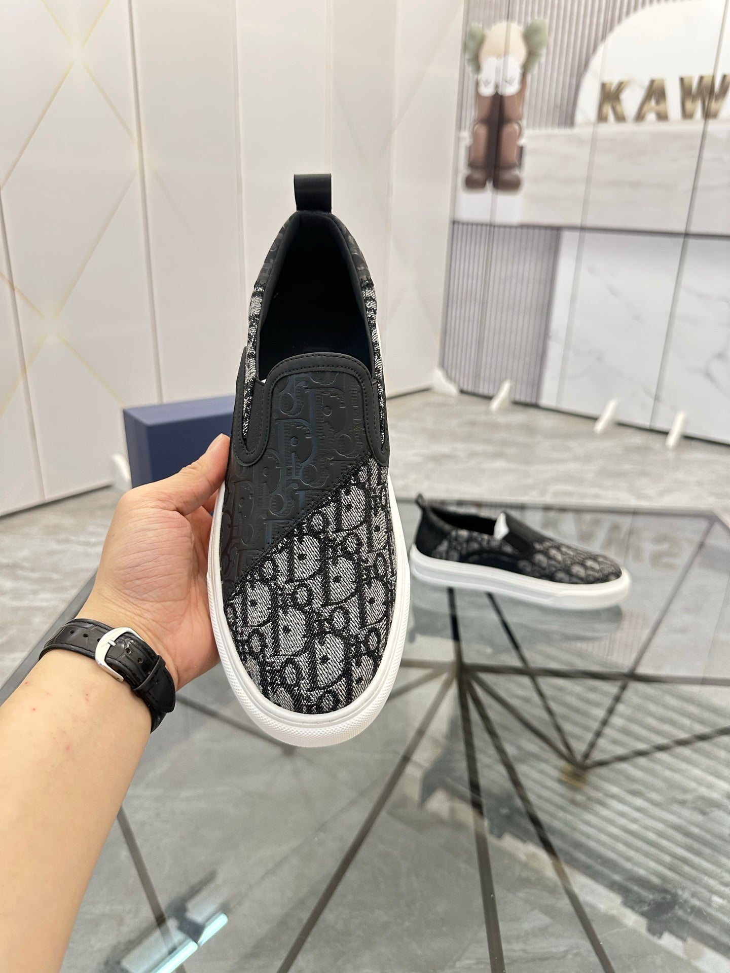 CD Slip on loafer Black Cowhide Fabric 647998