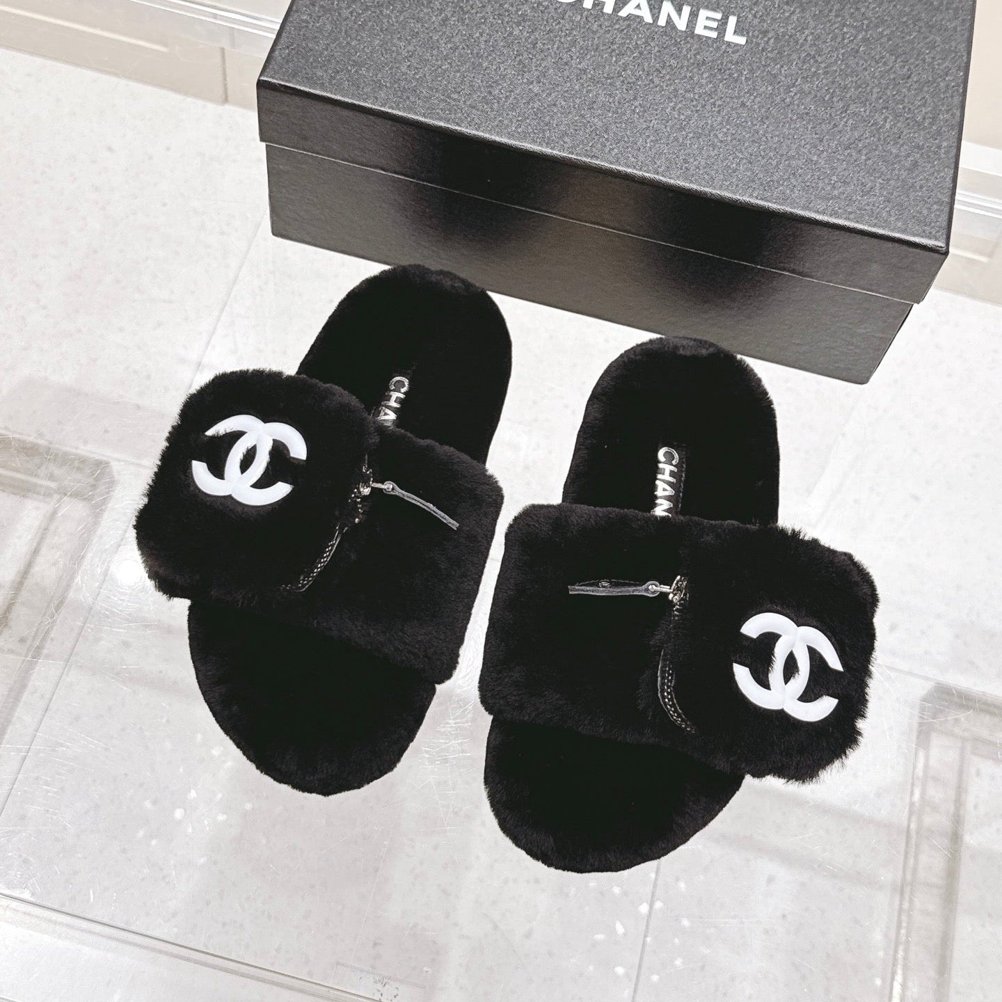 Chanel 25A Early Autumn Slippers Black Wool 393078