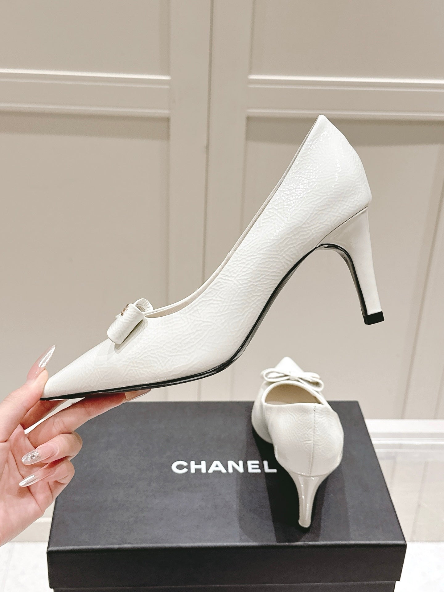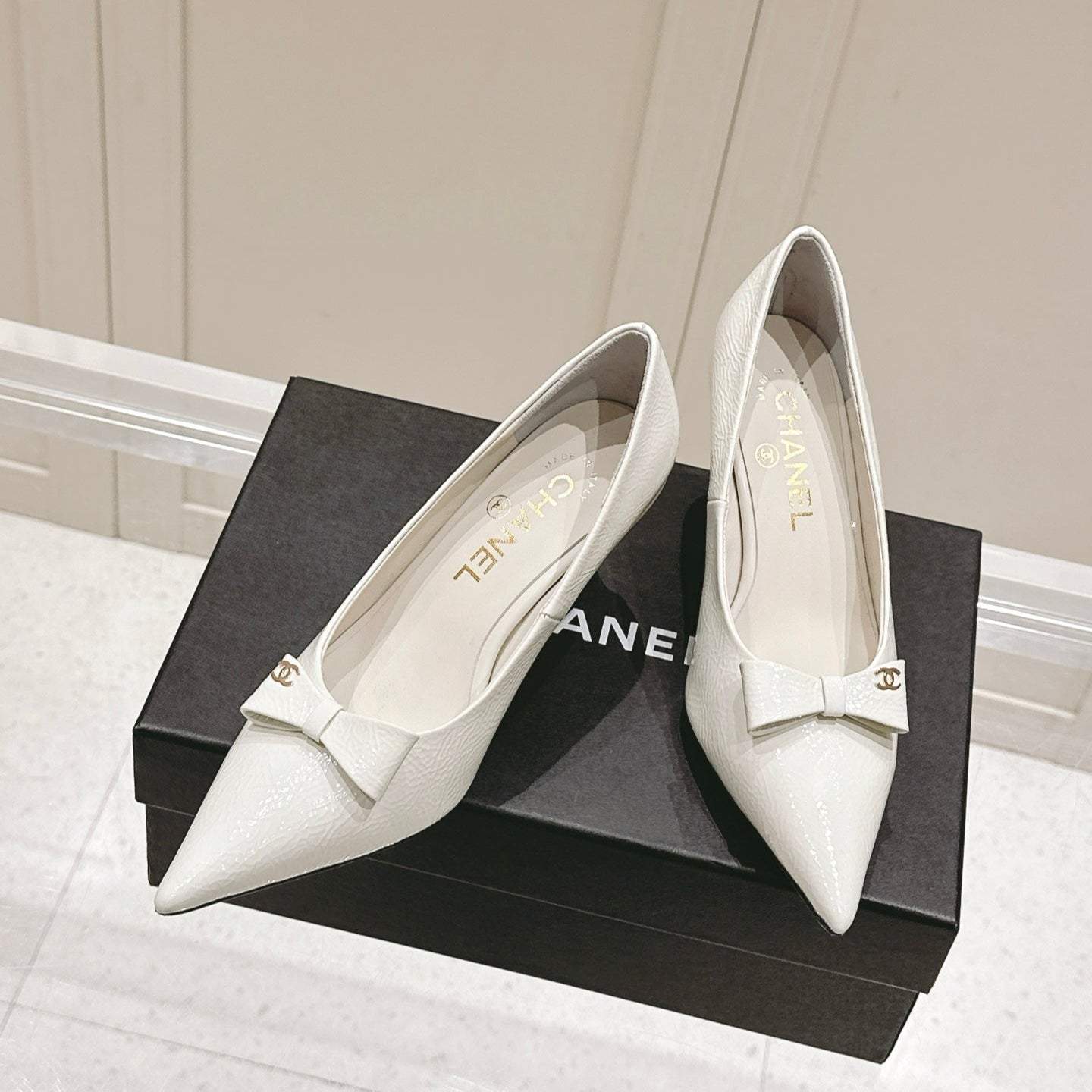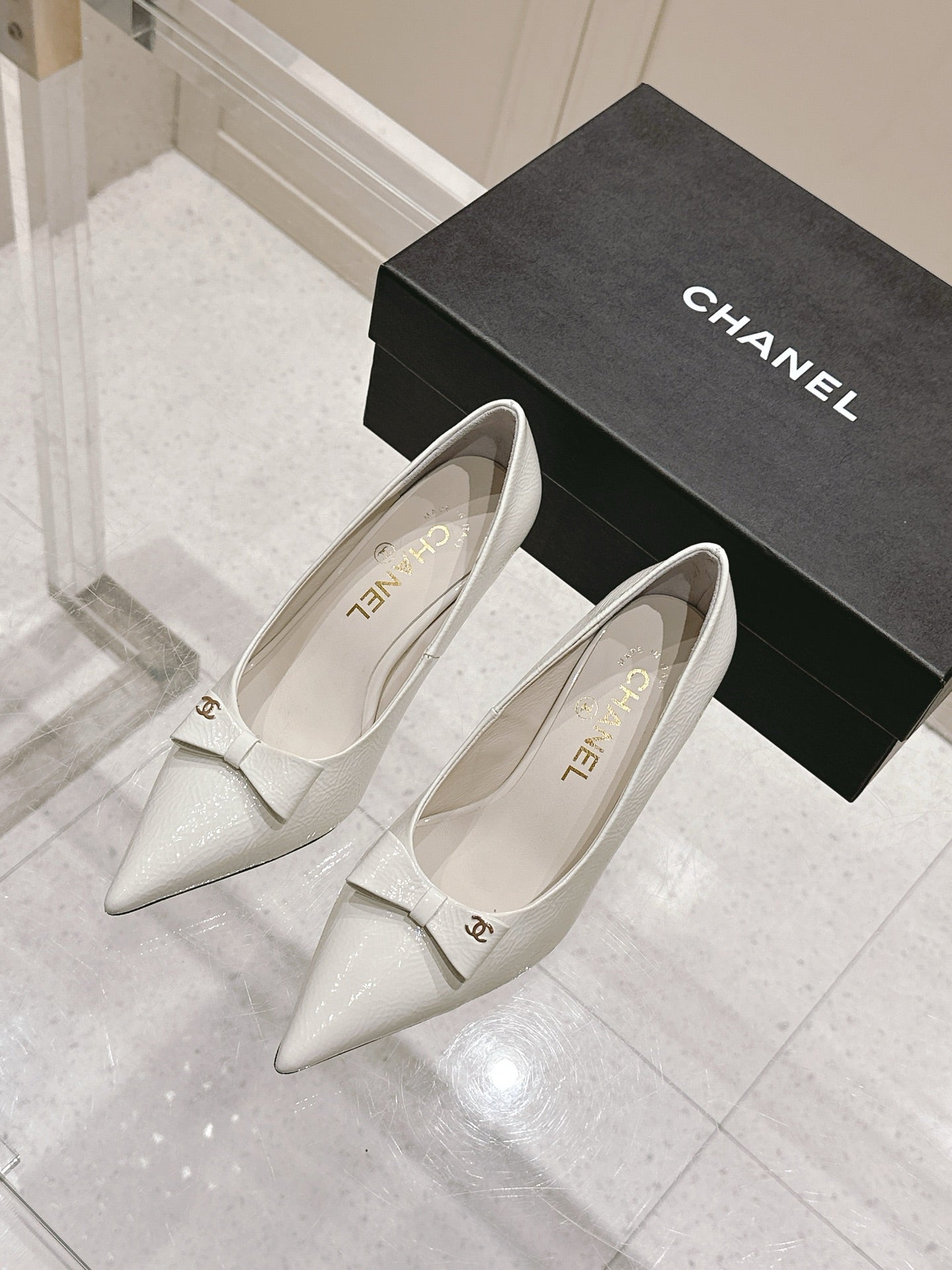 Chanel 25A Heel Pump White Patent Calfskin 393068