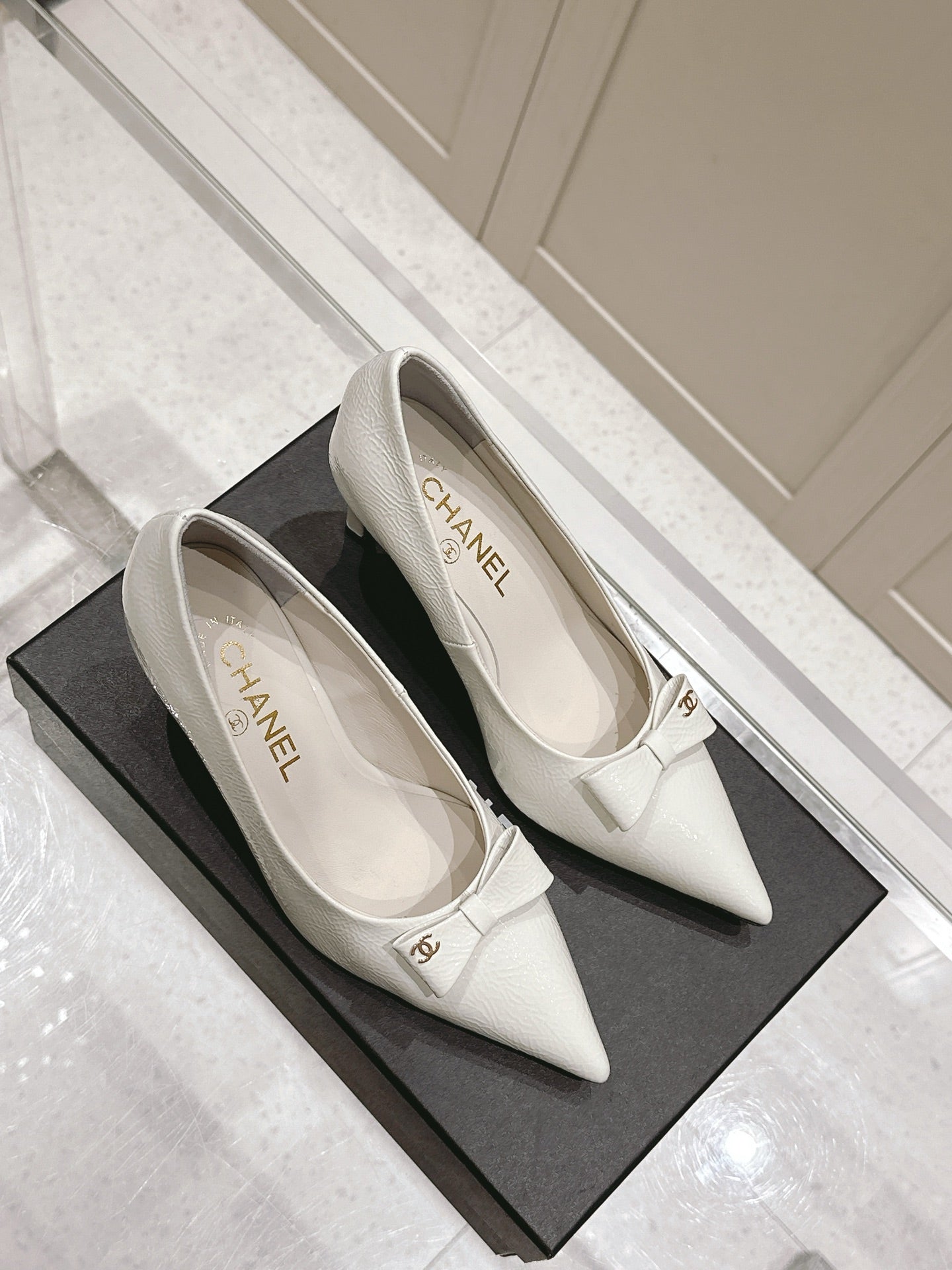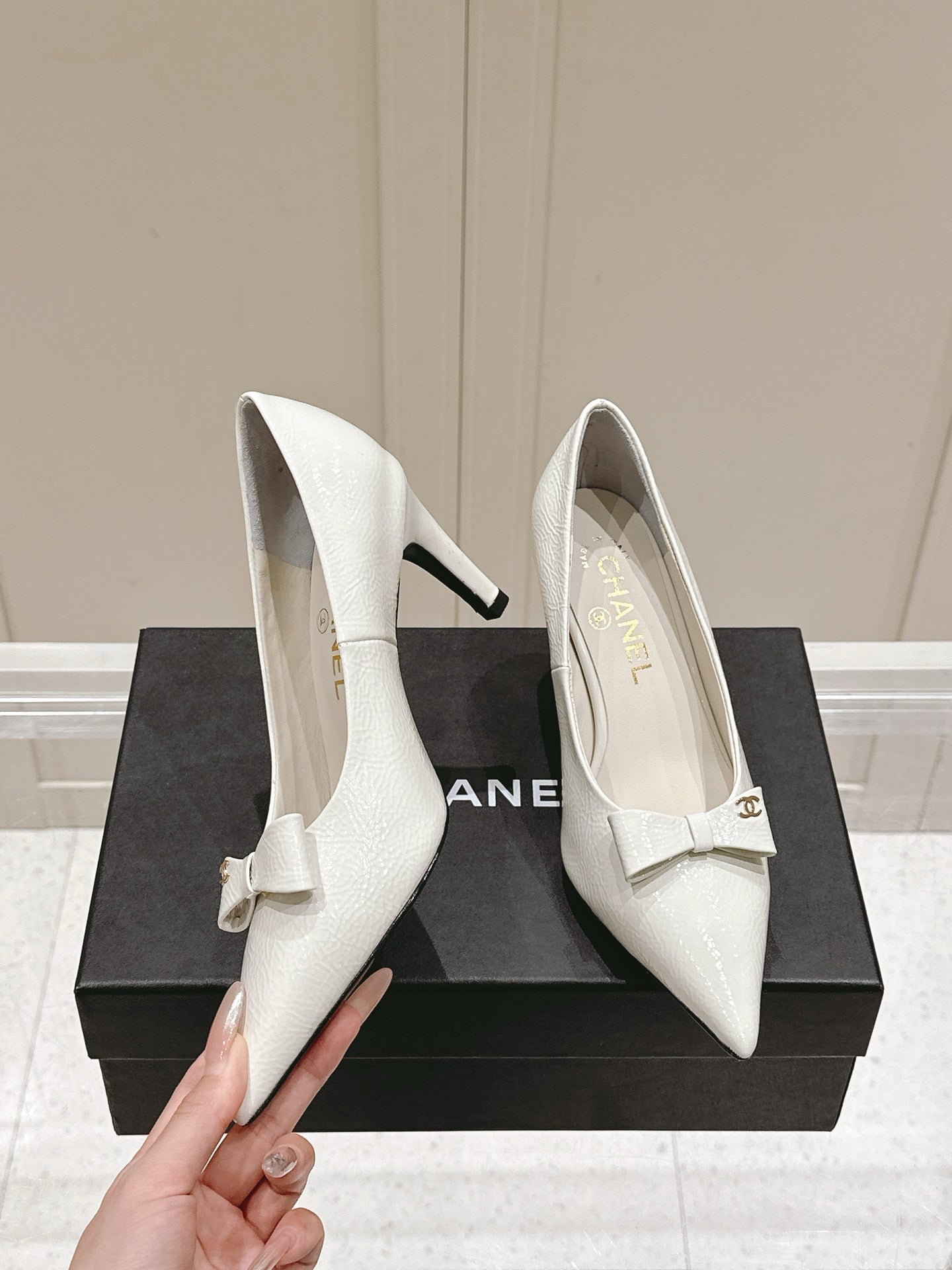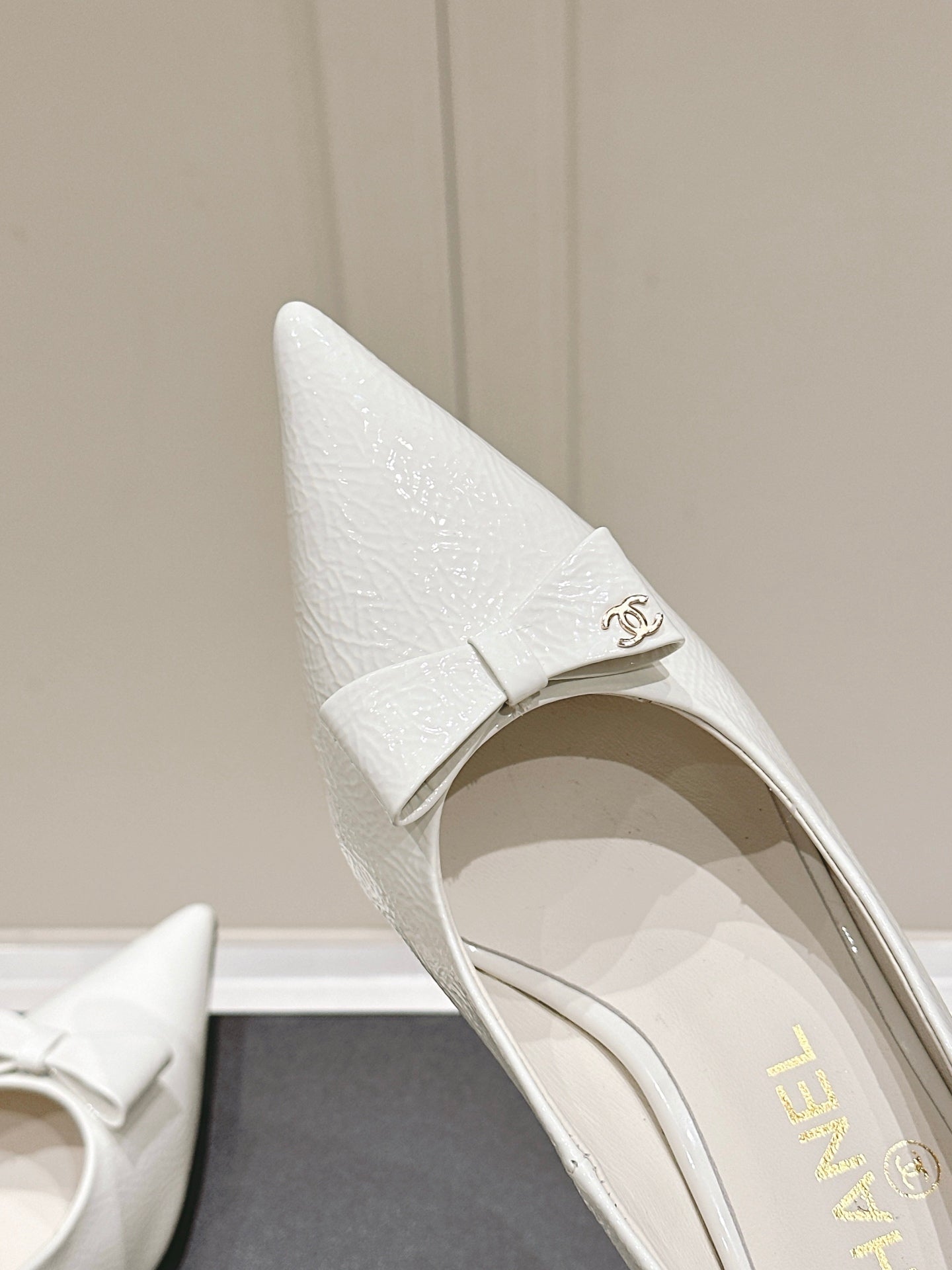 Chanel 25A Heel Pump White Patent Calfskin 393068
