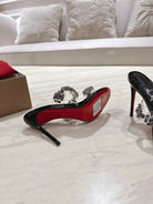 CL 25 Just Queen Sandals 10cm Black PVC Sheepskin 307525