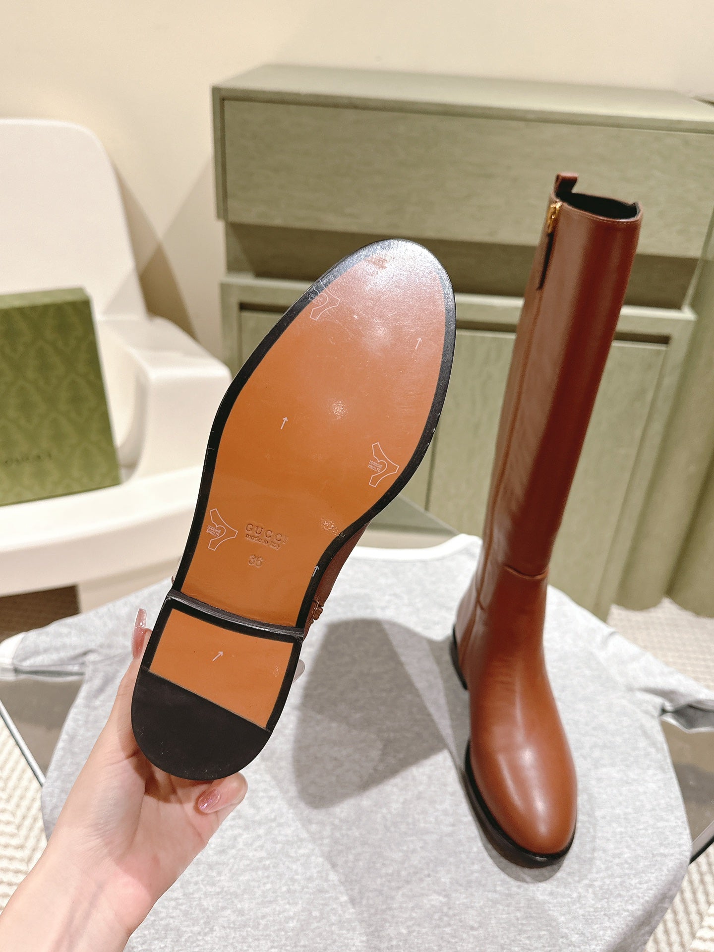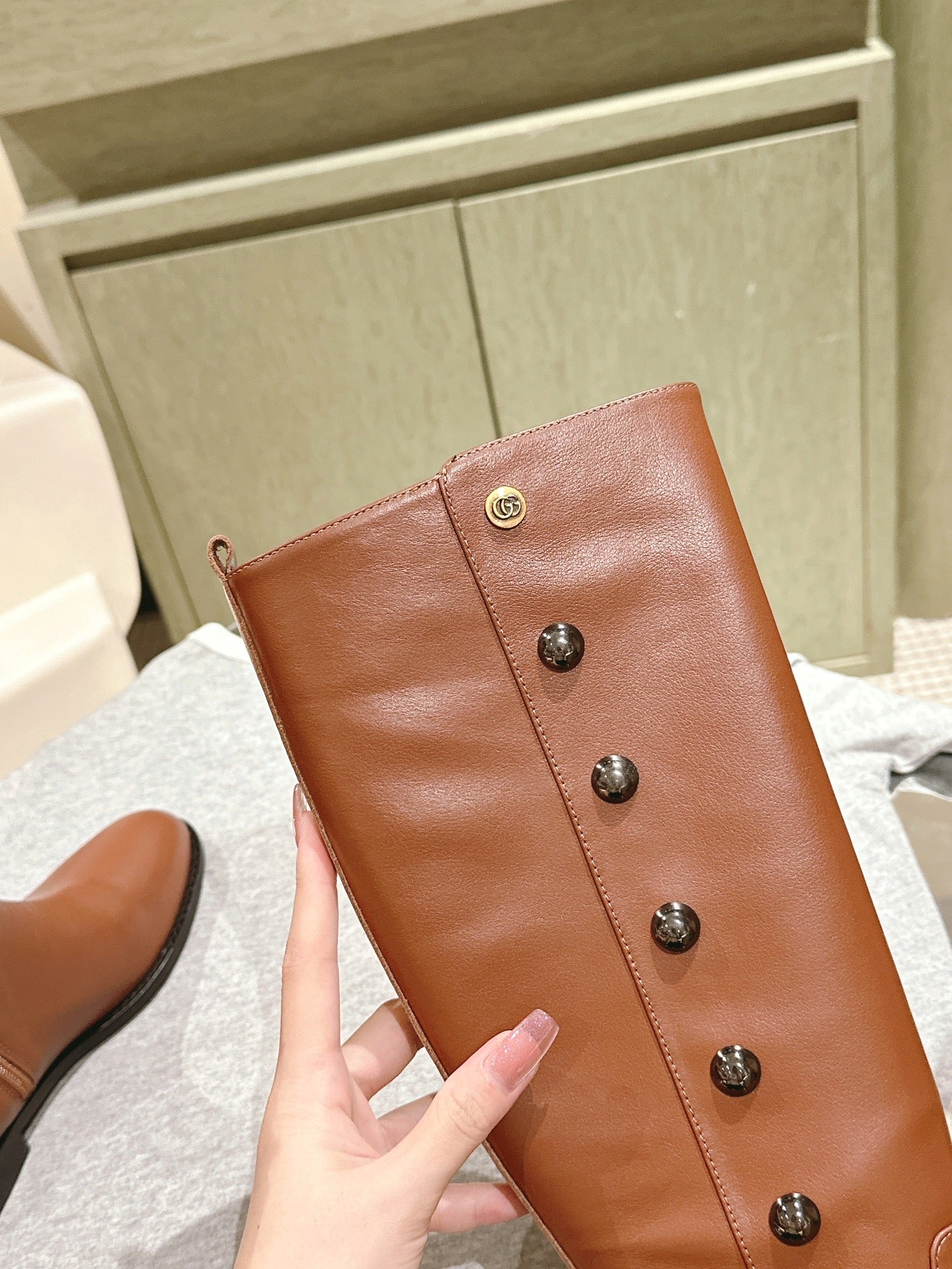 Gucci Button Boots Brown Black Sheepskin 484876
