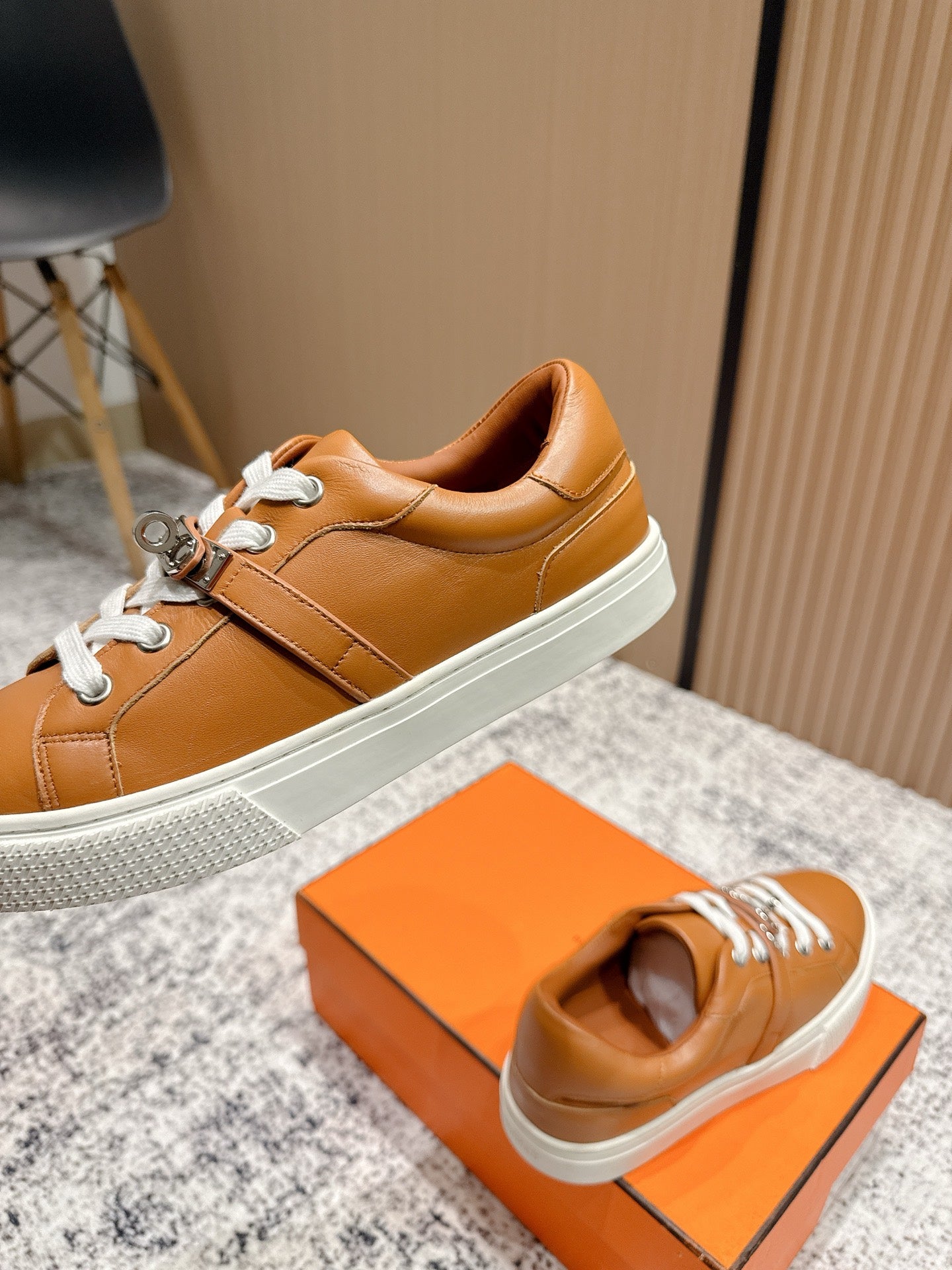 HM Casual Sneakers Sliver Buckle Brown Leather