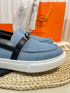HM Denim Loafer Blue Black Cowhide Cloth 317049