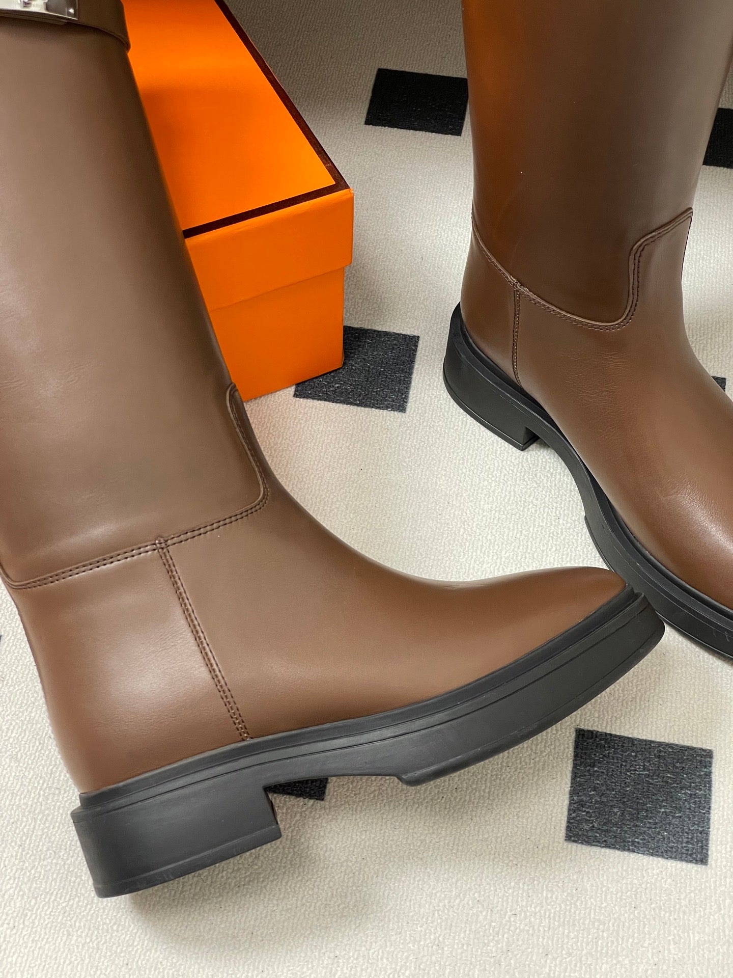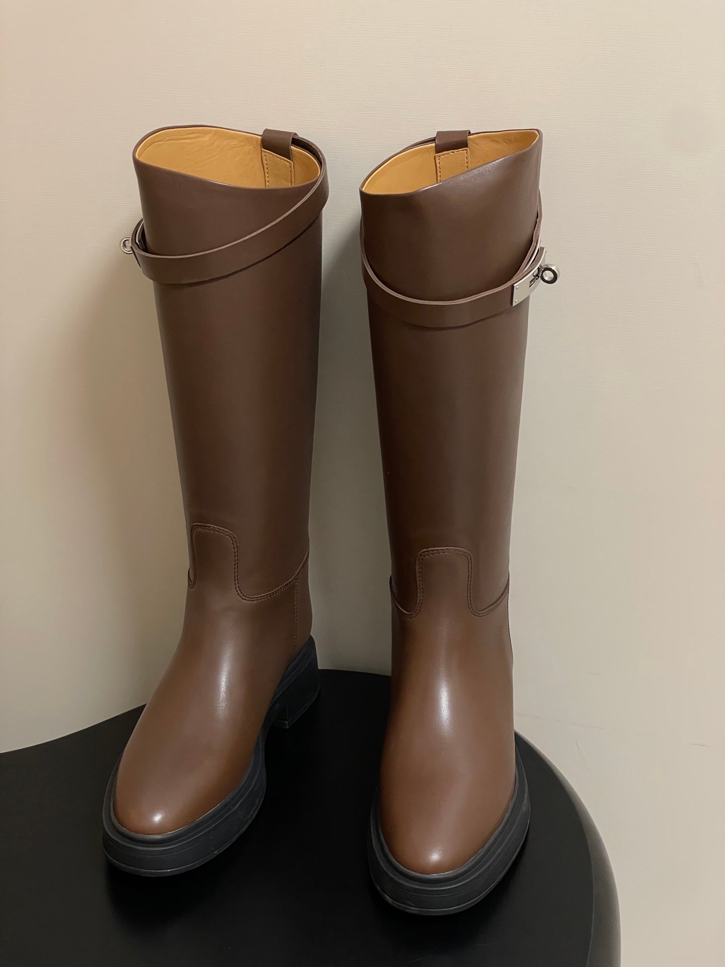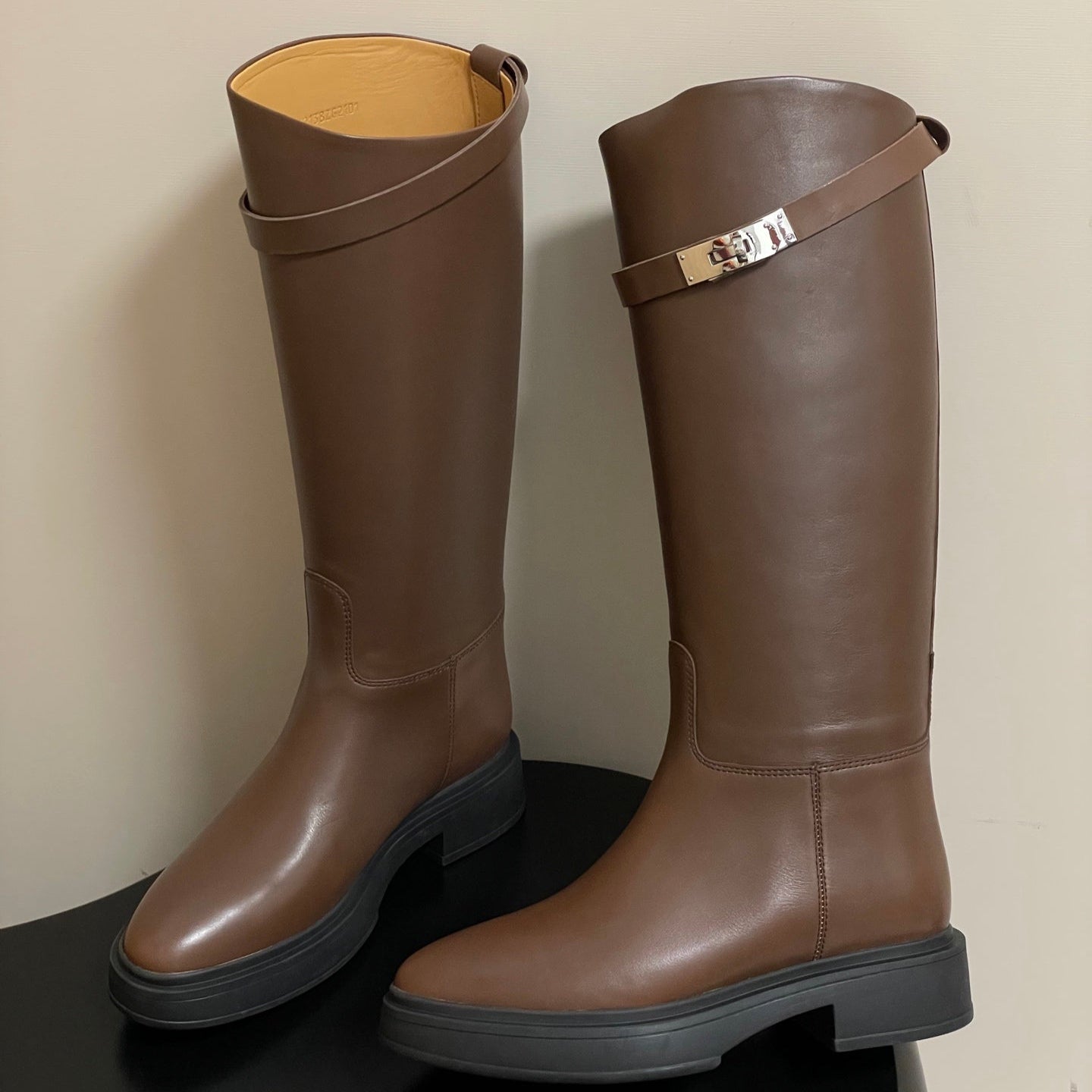 HM Jumping Boots Dark Brown Kelly Buckle Cowhide Leather