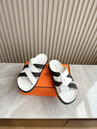 HM Kazimir Sandal White Black Lamb Leather Cloth 312839