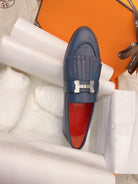 HM Mocassins Royal Loafers Navy Blue Goat Leather 348020