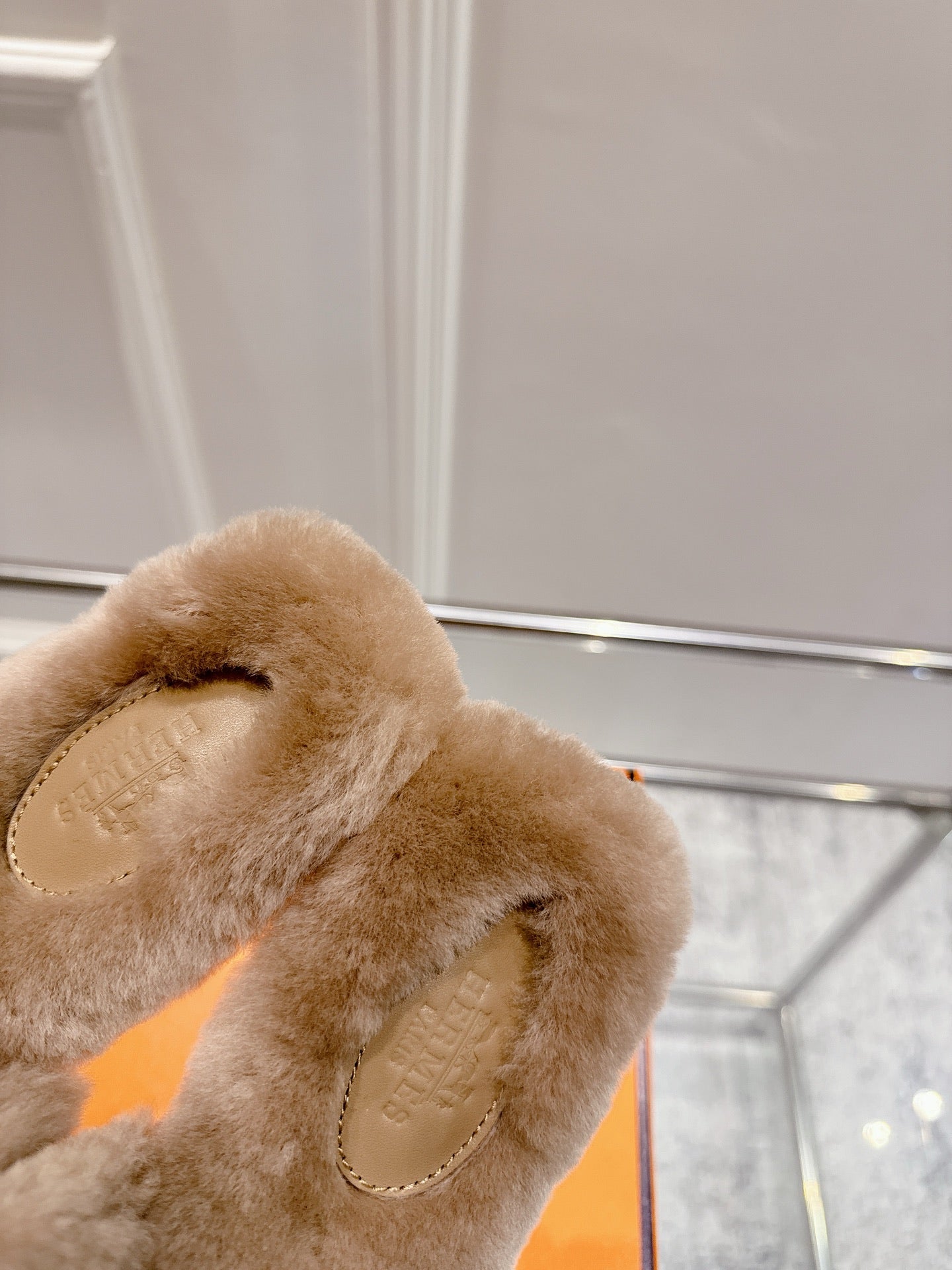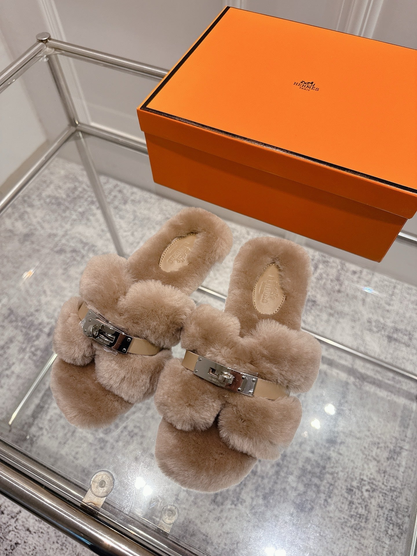 HM Oran slippers sliver buckle nude wool
