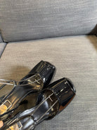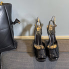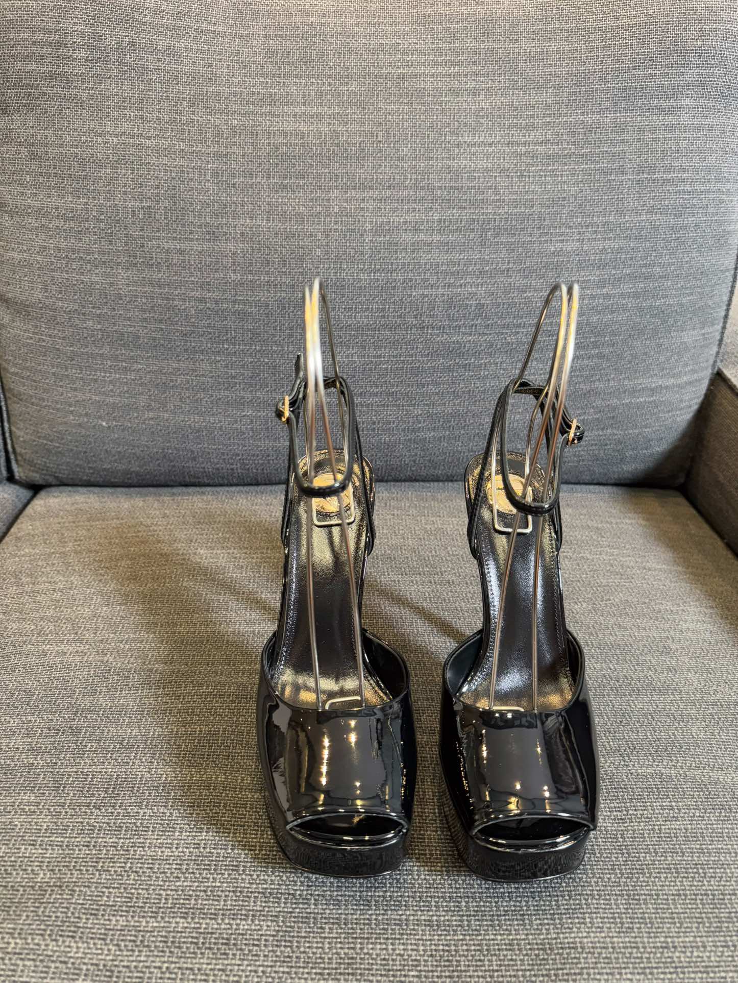 LA SCANDALE PLATFORM SANDALS IN BLACK GLOSSY CALFSKIN