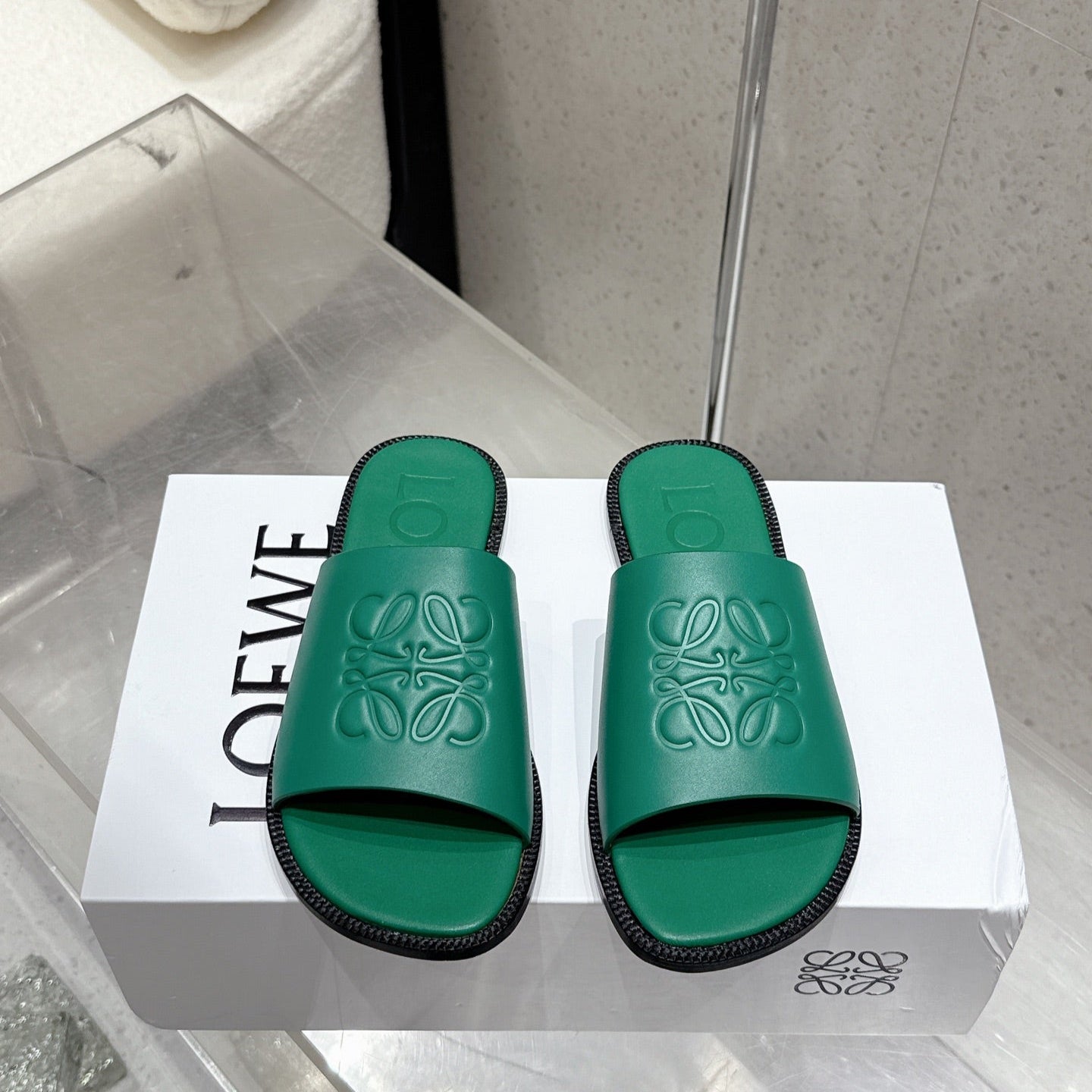 Loewe 25 flat slippers vibrant green calfskin