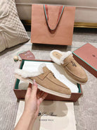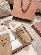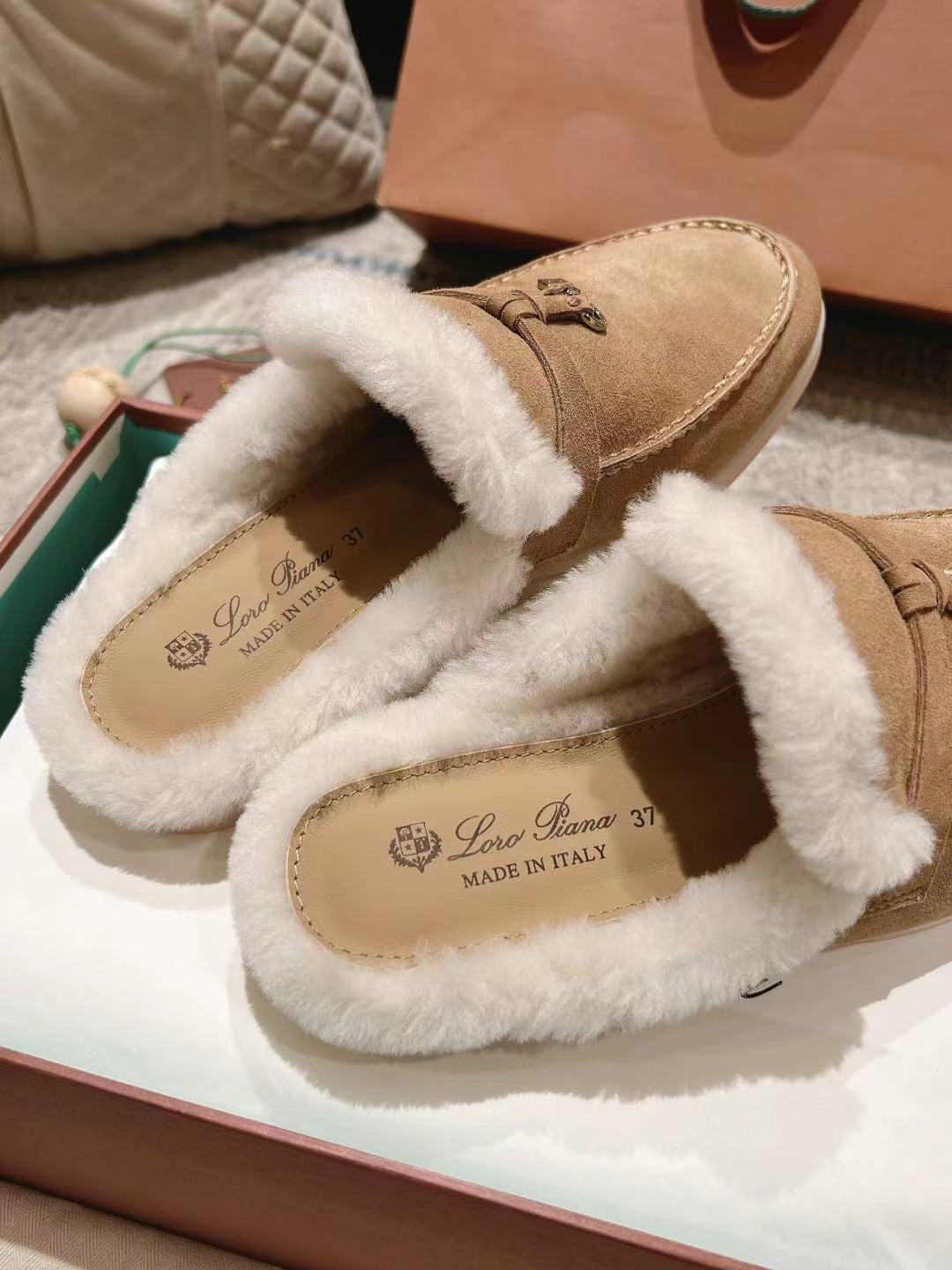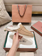 LP Charms Walk Babouche Loafer Peach Yellow Suede With Rabbit Fur Lining 206244