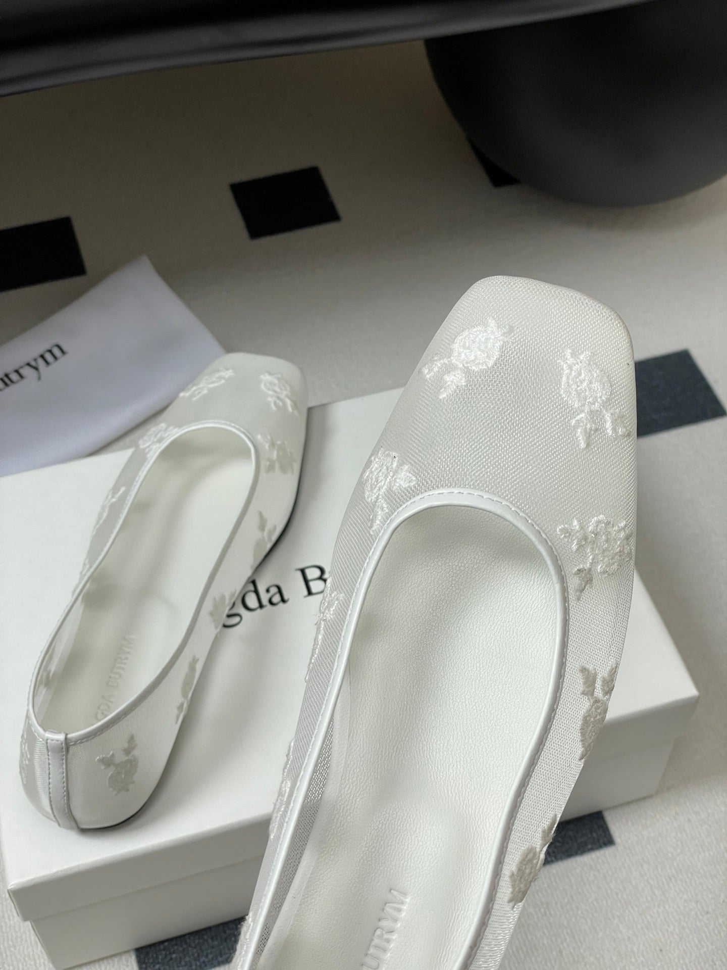 Manolo 25 Ballet Flats White Mesh Fabric 319741