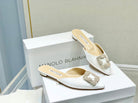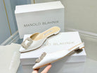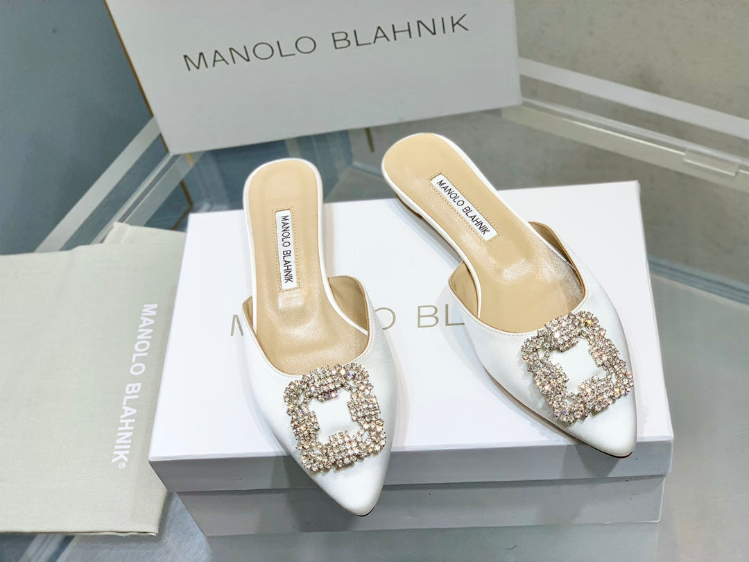 Manolo Buckle Flats Mules White Silk 327510