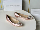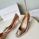 Manolo Diamond Buckle Pumps Pink Gold Mirror Cowhide 451181
