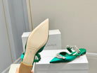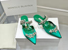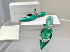 Manolo Flats Mules Crystal Green Silk Satin 327474