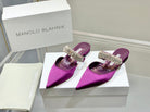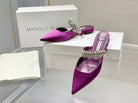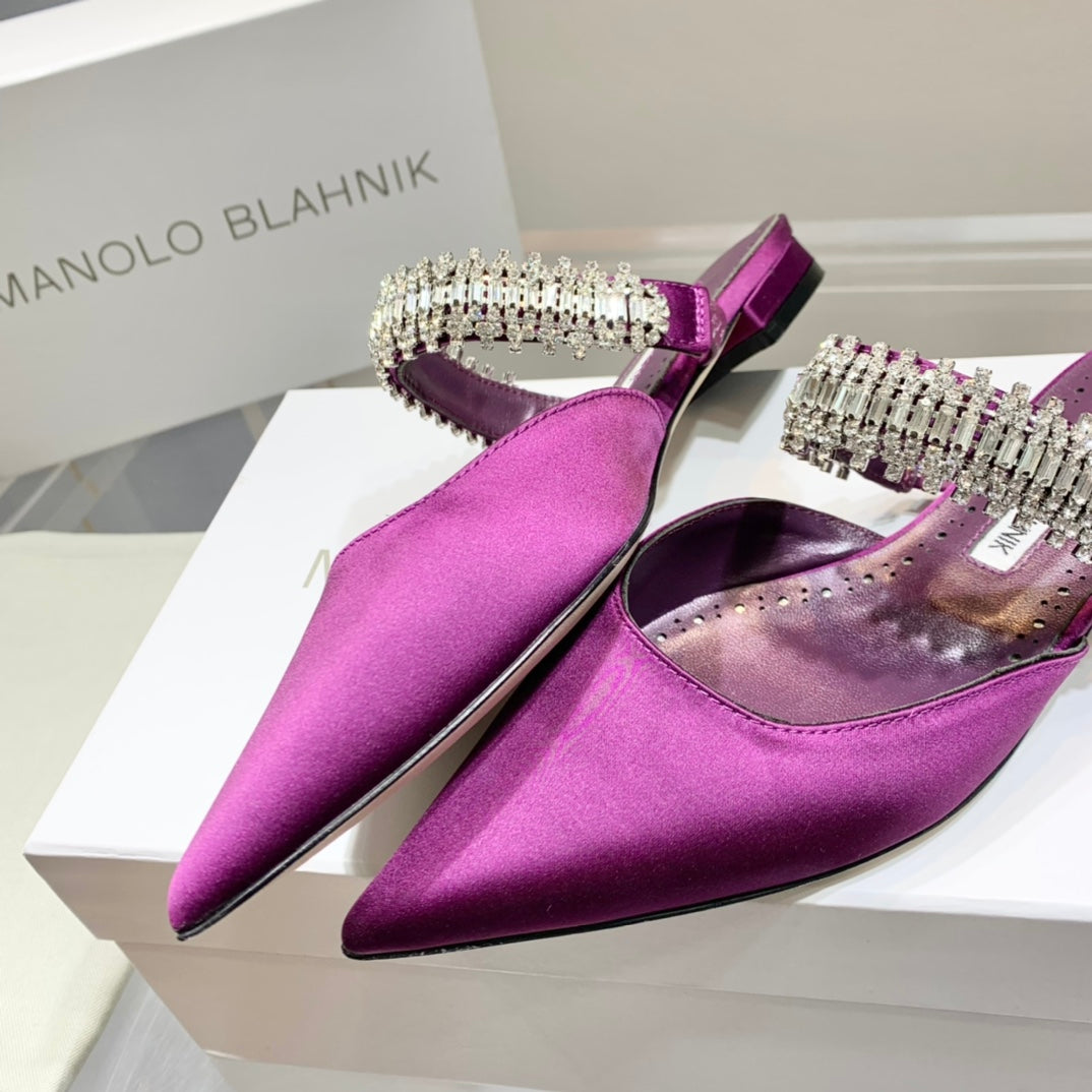 Manolo Flats Mules Diamond Buckle Purple Silk Satin 327487
