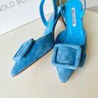 Manolo Slingback 7cm Blue Suede Leather Bottom 451207