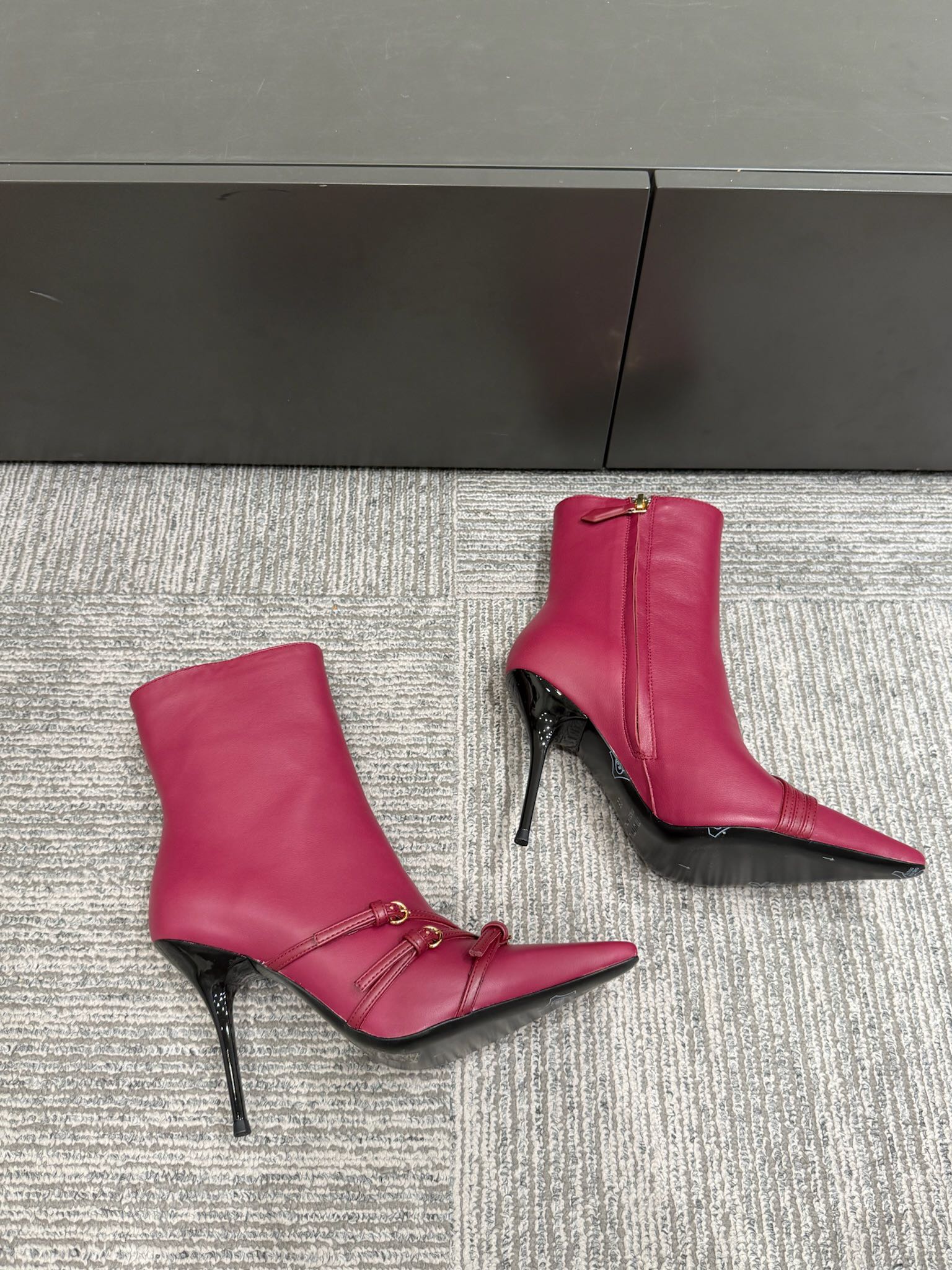 Miu 90 short boots deep magenta or berry cowhide 417984