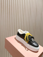MIU MIU platform sneakers black leather wool 461860