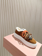 MIU MIU platform sneakers brown suede wool 461864