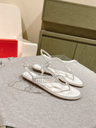 RC 25 Thong Diamond Flat Sole White Silk Rhinestones 268068