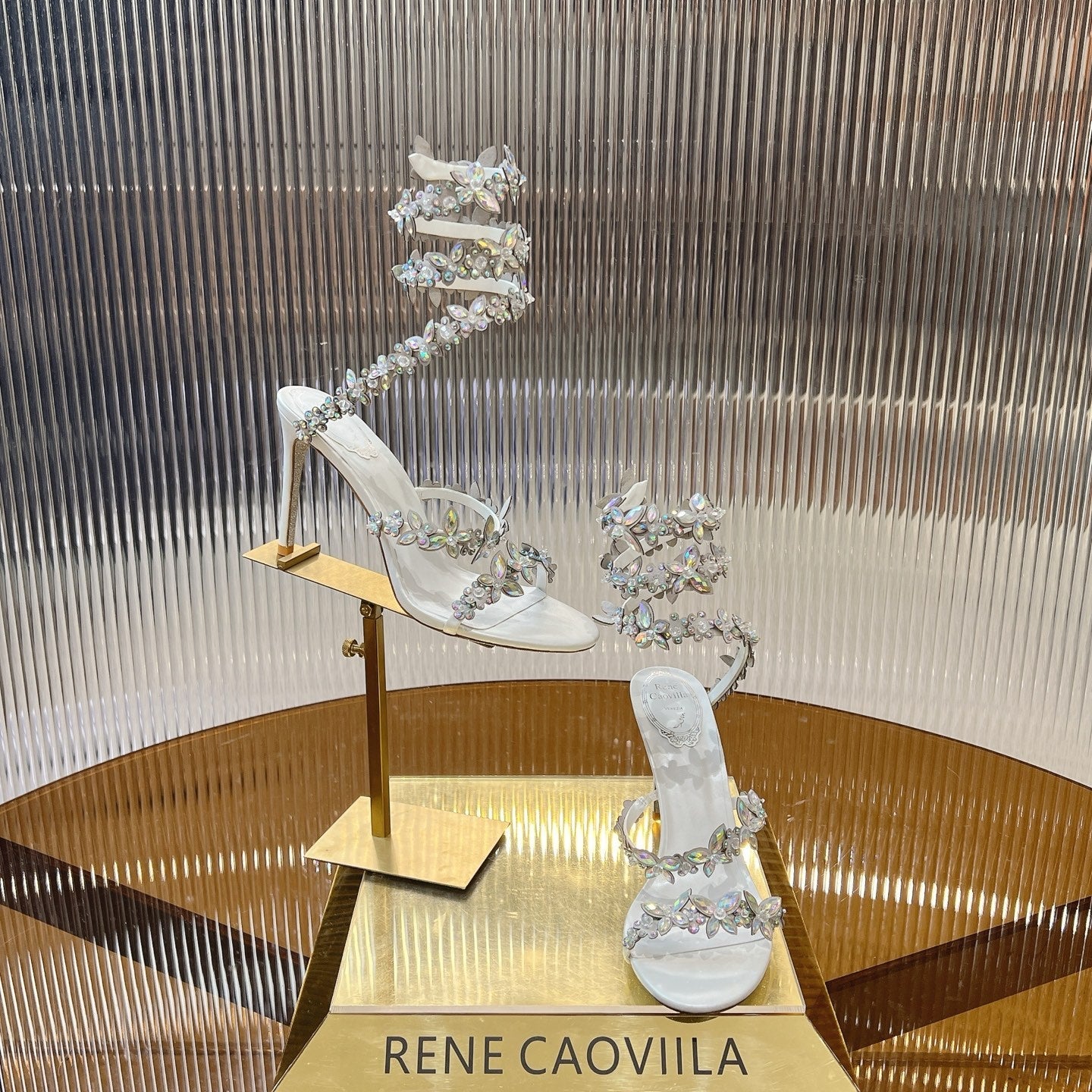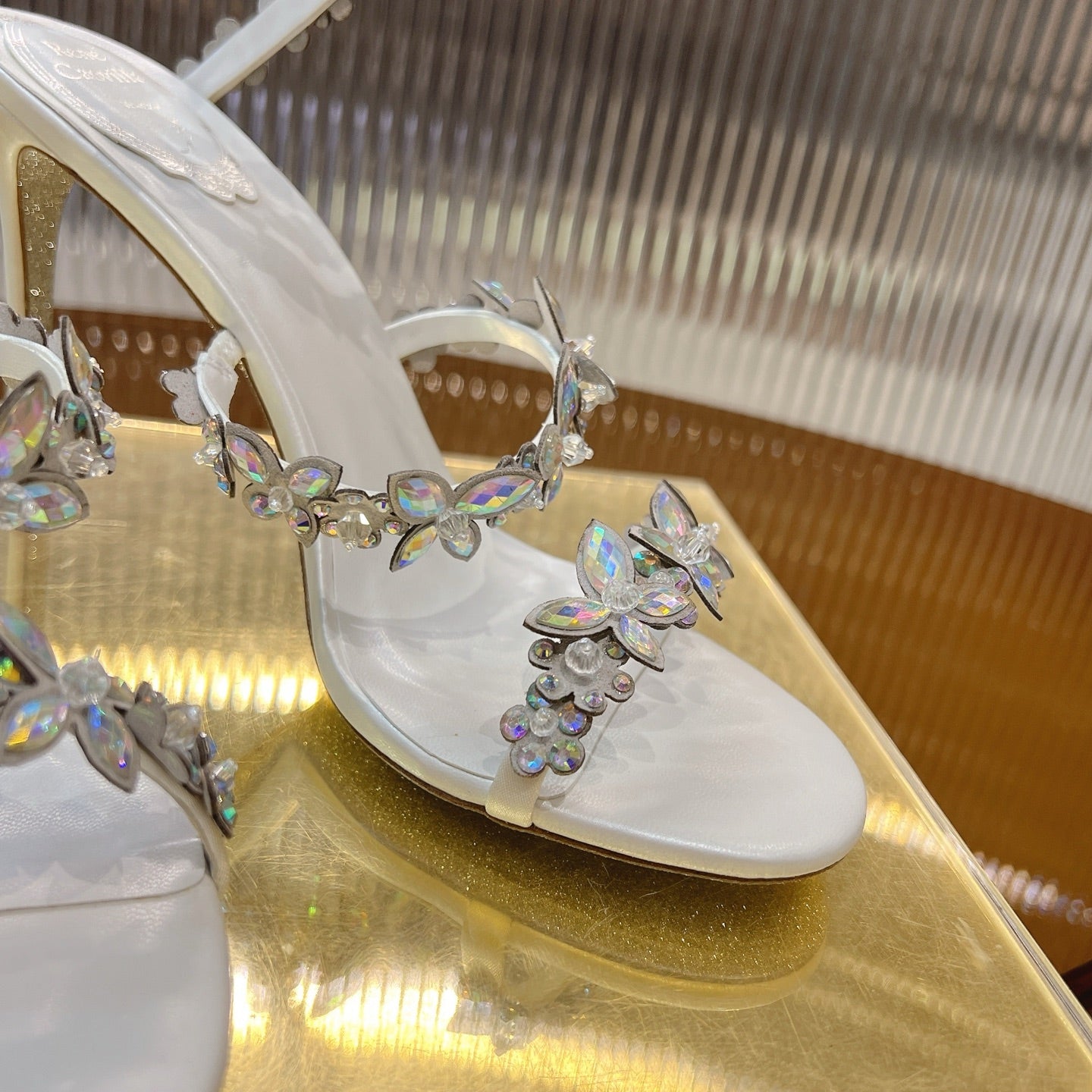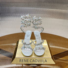 RC 25C Butterfly Flower High Heels Sandals White Sheepskin Rhinestone 281975