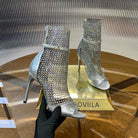 RC 25C High Heel Short Boots Mid-Tube Open-Toe Sandals Grey Sheepskin 174973