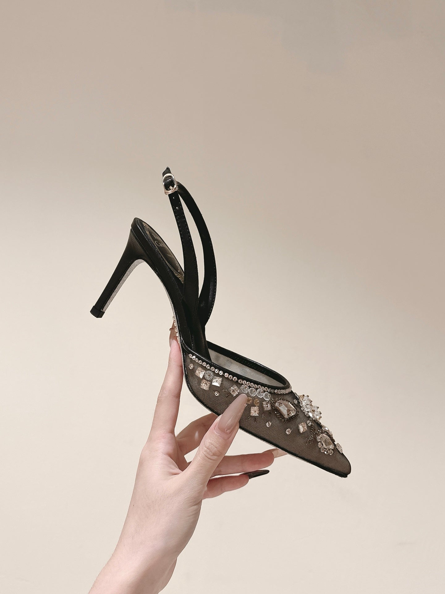 RC 25C Slingback Diamond High Heel Multicolor Silk Rhinestones 268077