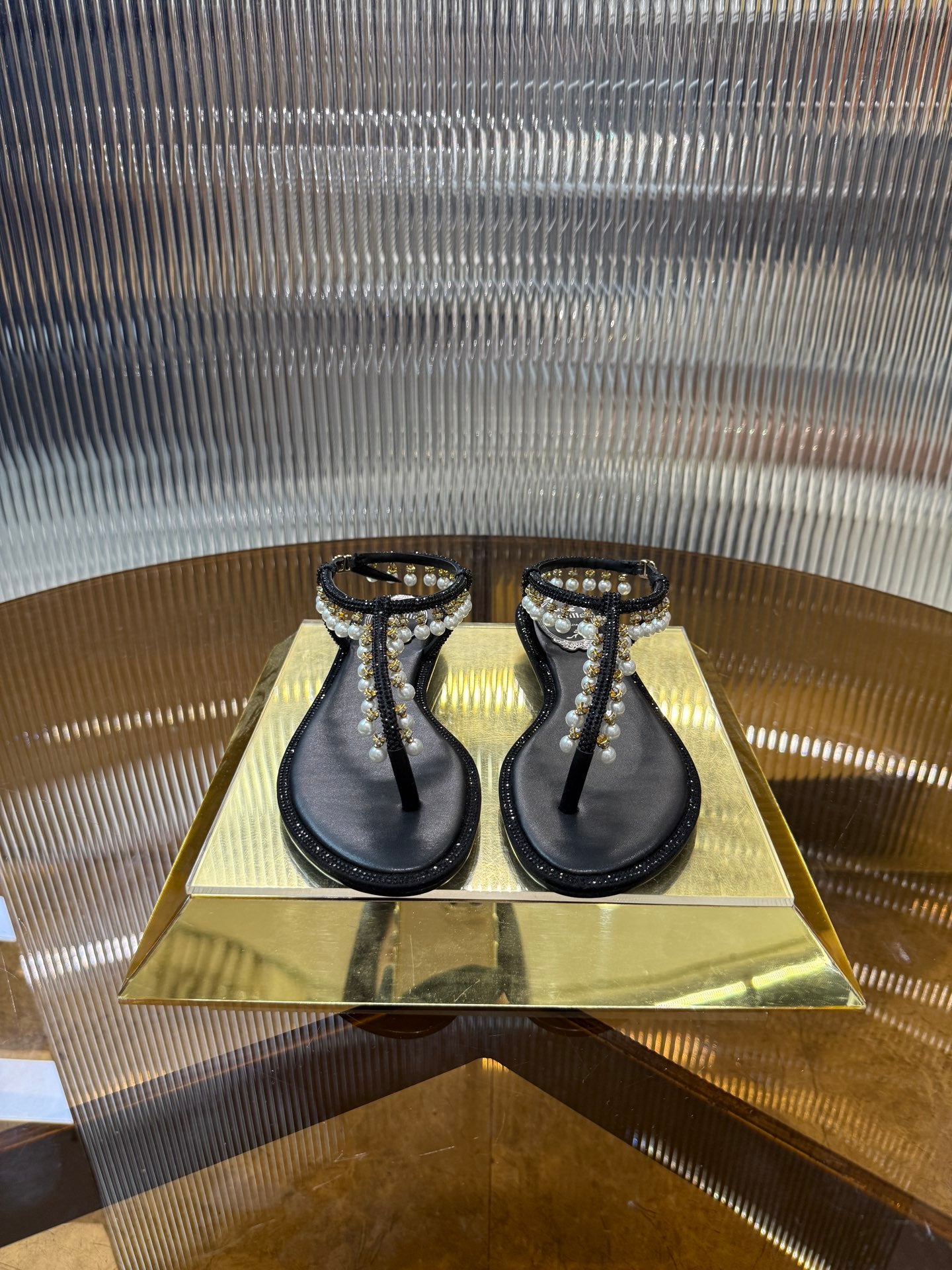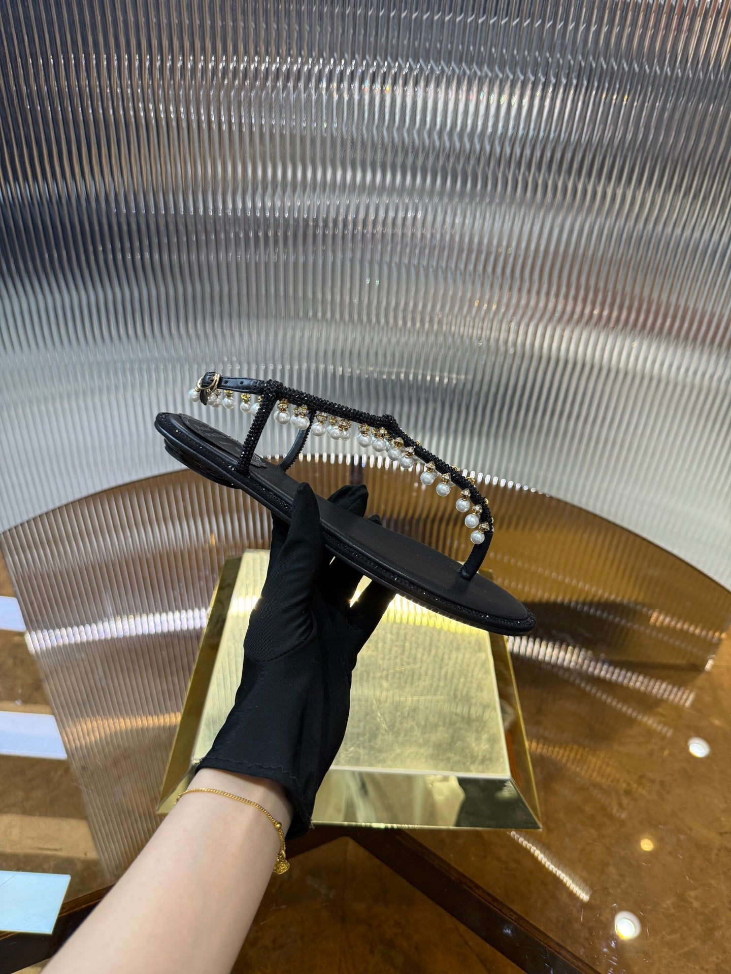 RC 25C Thong Diamond Flat Sandals Black Silk Rhinestone 275773