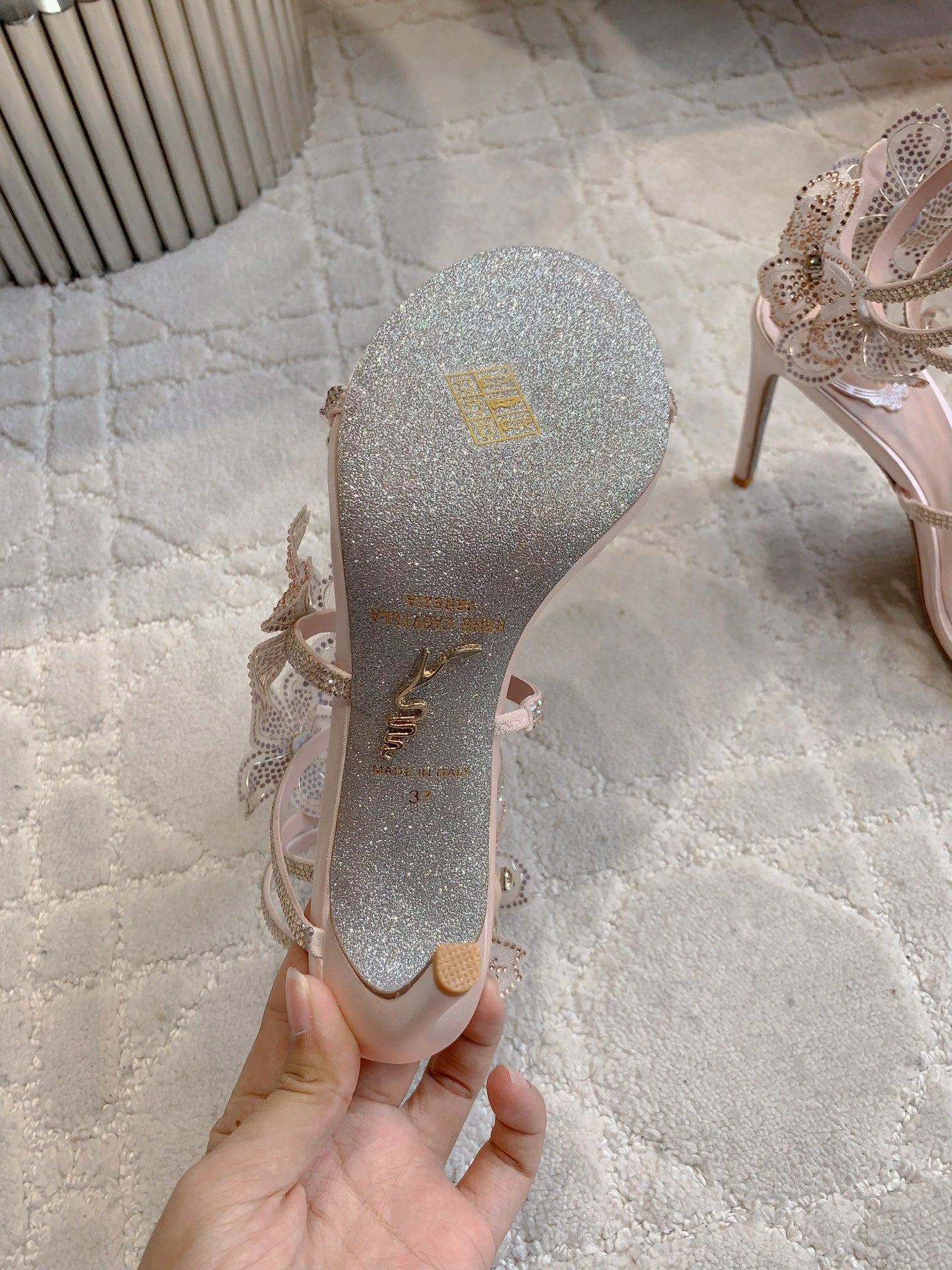 RC Flower Sandals Pink Nude Sheepskin Rhinestones 328466