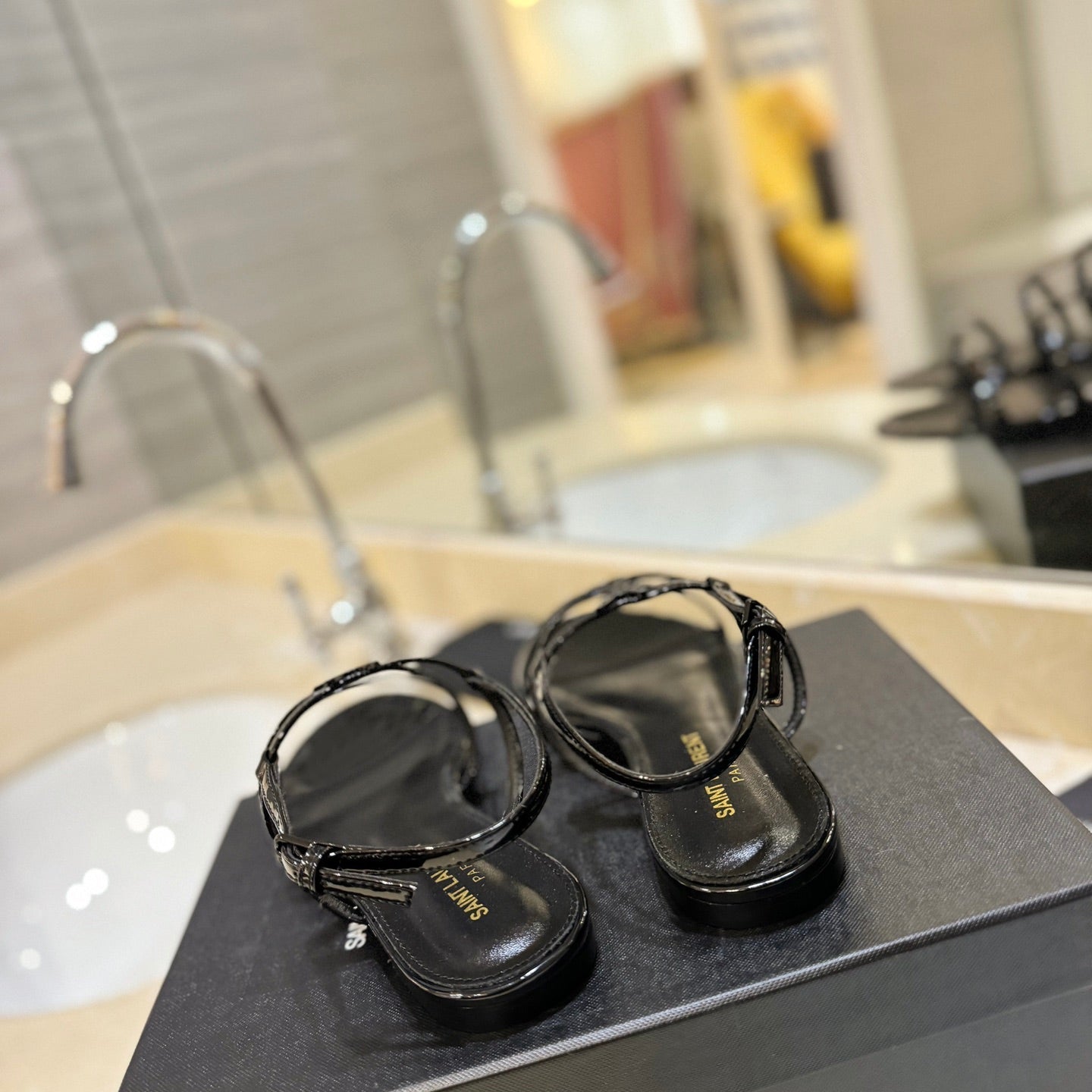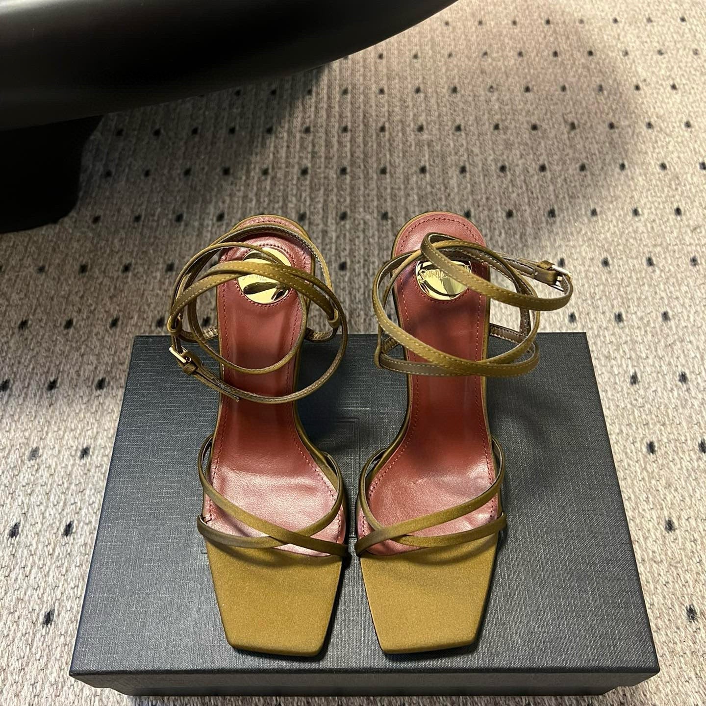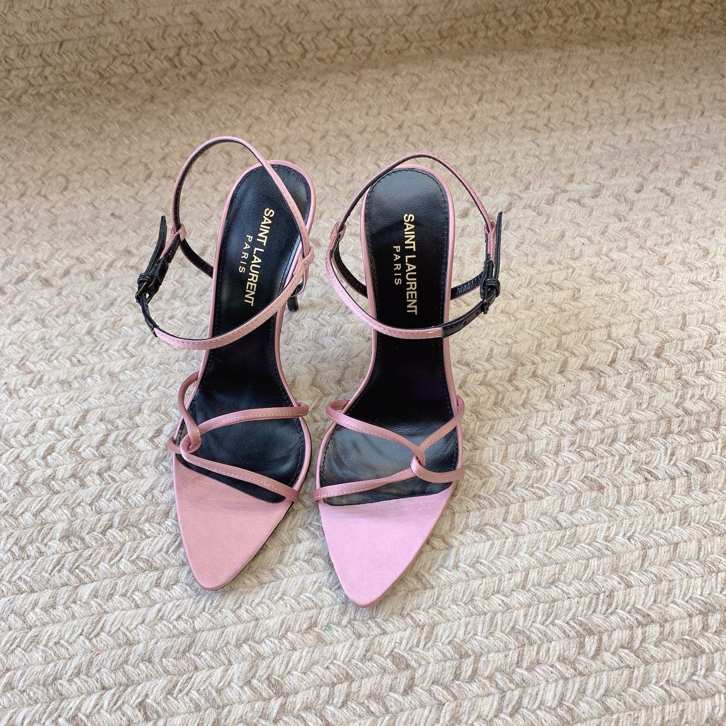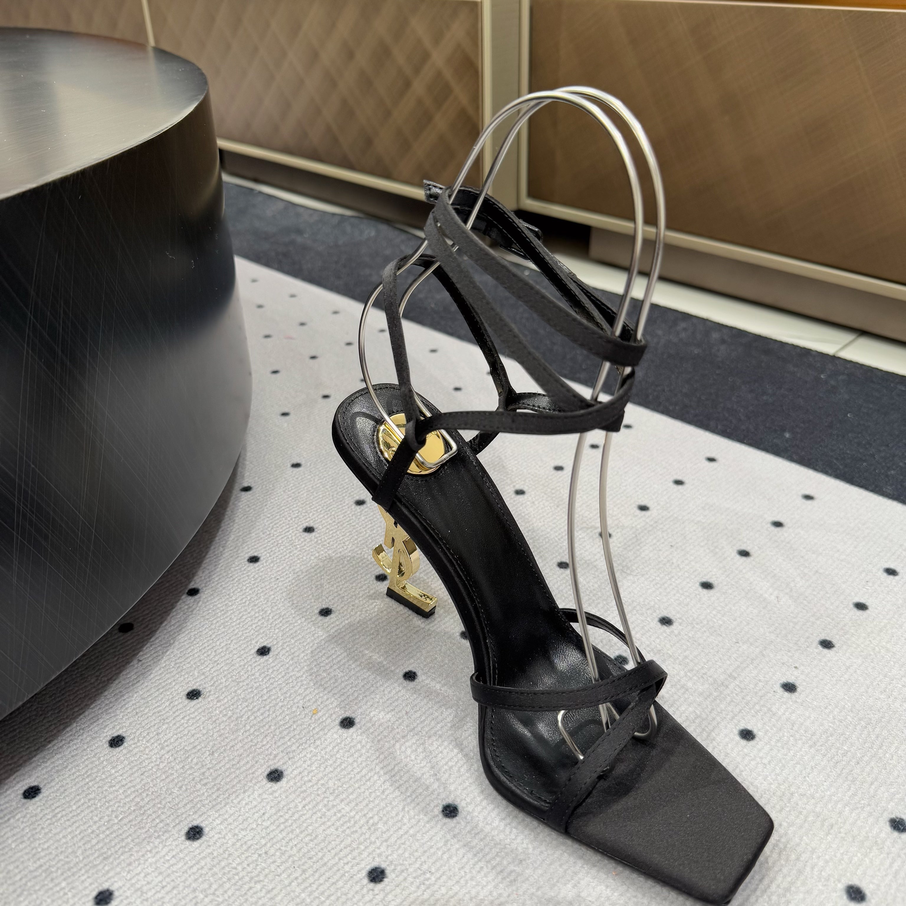 STRAPPY MID HEEL SANDALS IN BLACK SILK