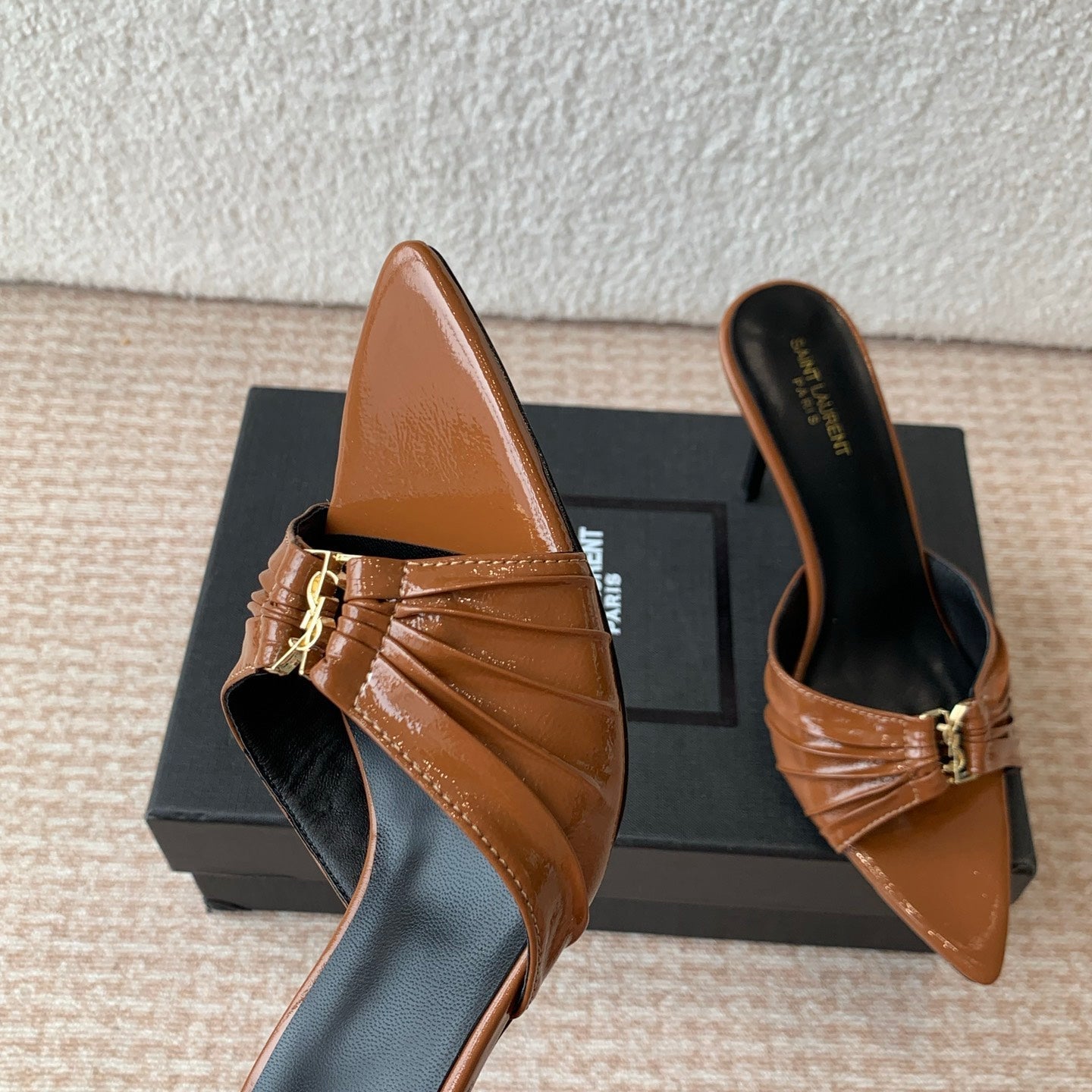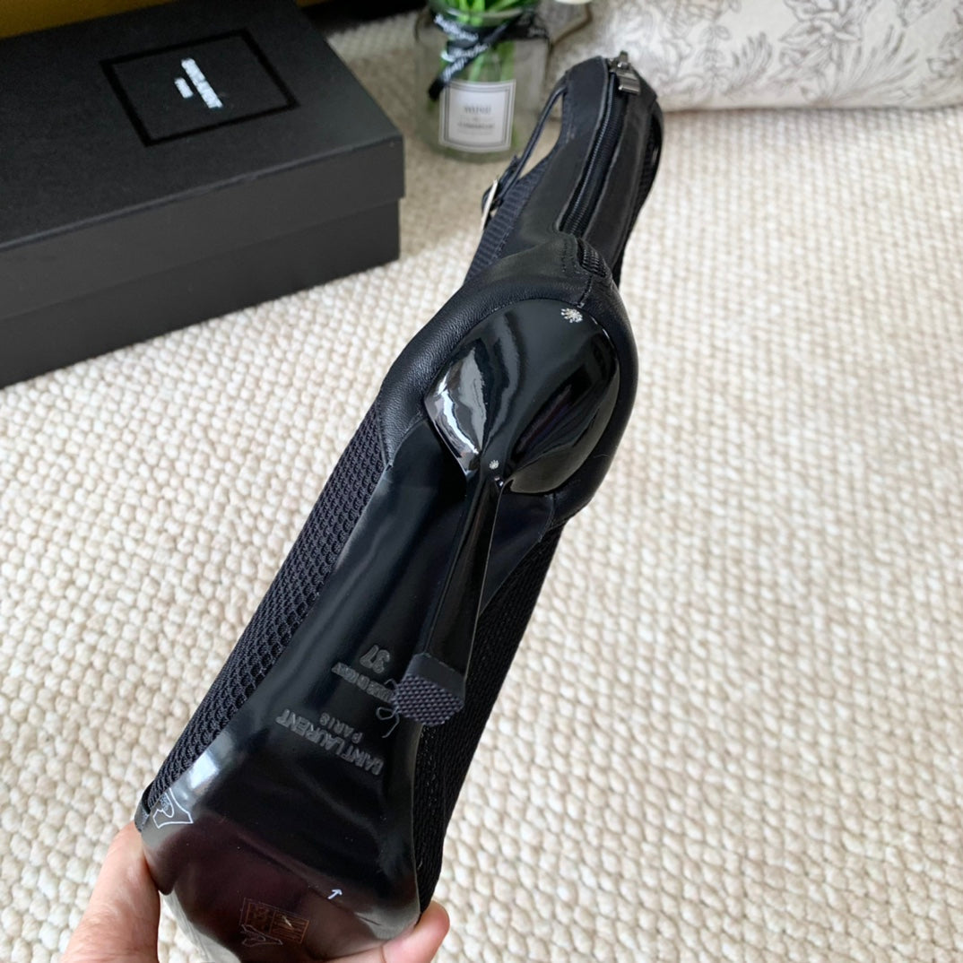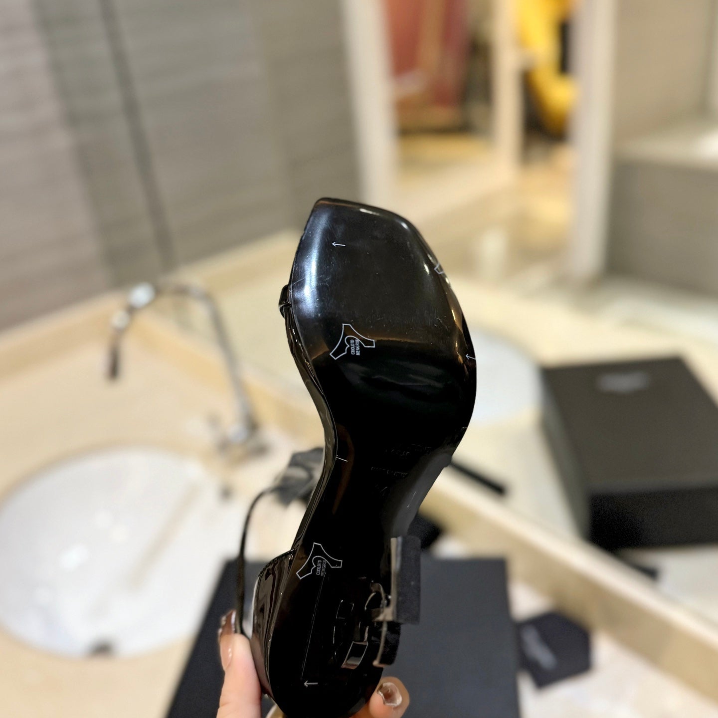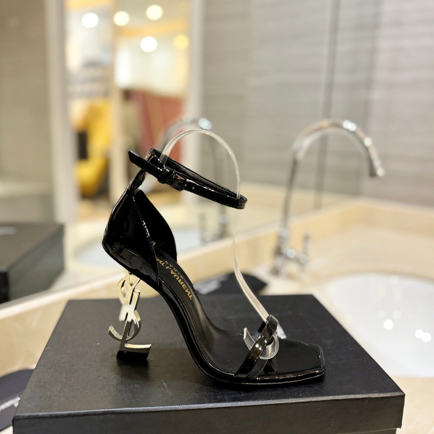 STRAPPY MID HEEL SANDALS IN BLACK SILK