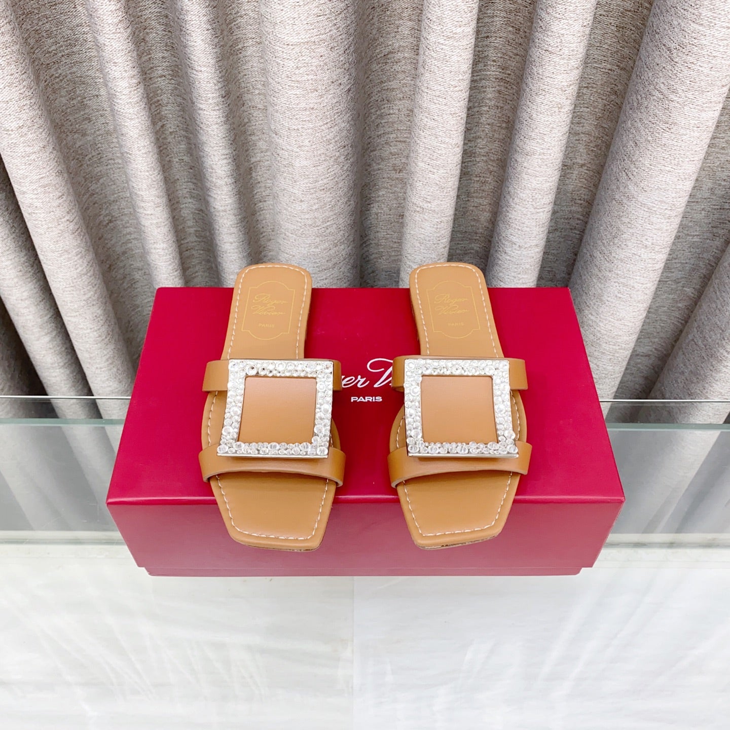 Viv 25 Diamond Flat Slippers Brown Cowhide 283035