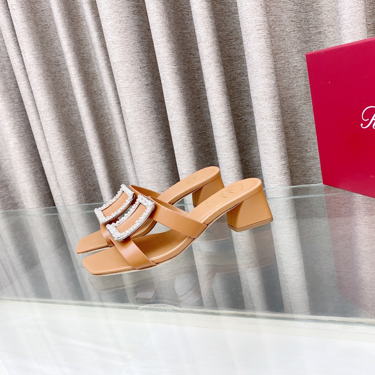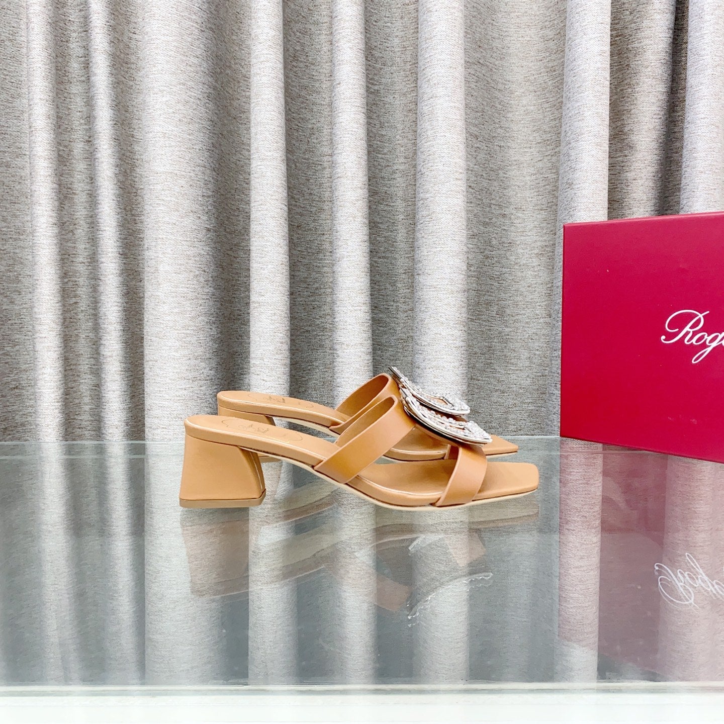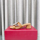 Viv 25 Diamond Mid Heel Slides Brown Cowhide 283039