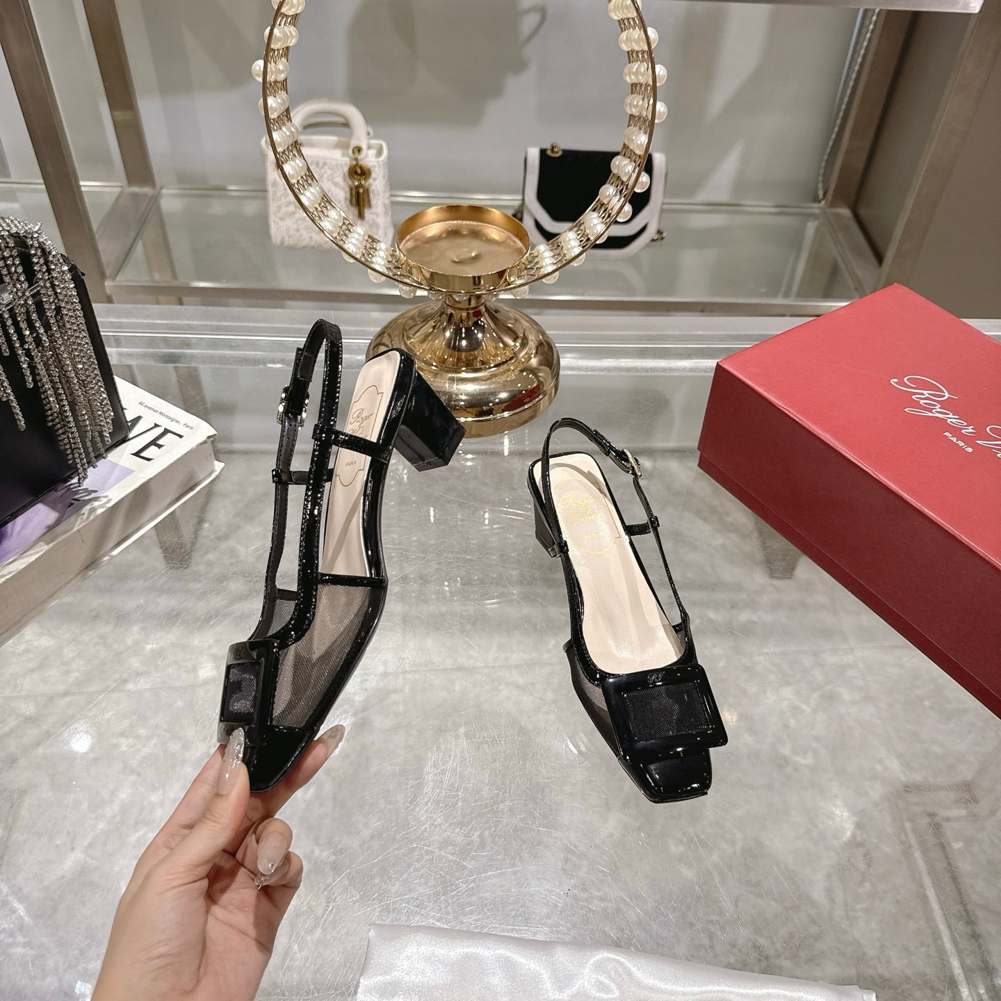 Viv 25 Slingback Black Mesh Italian Leather 300780