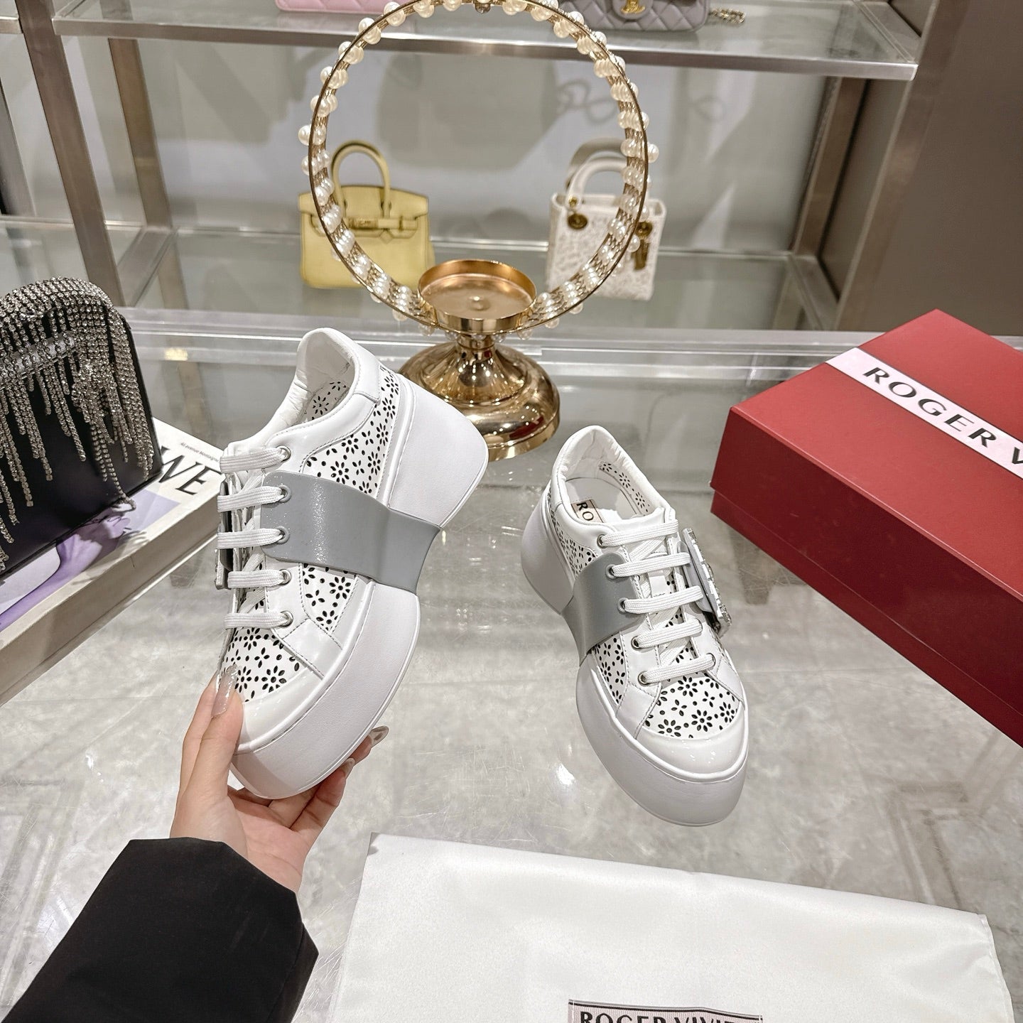 Viv 25 Square Buckle Platform White Grey Cowhide 262977