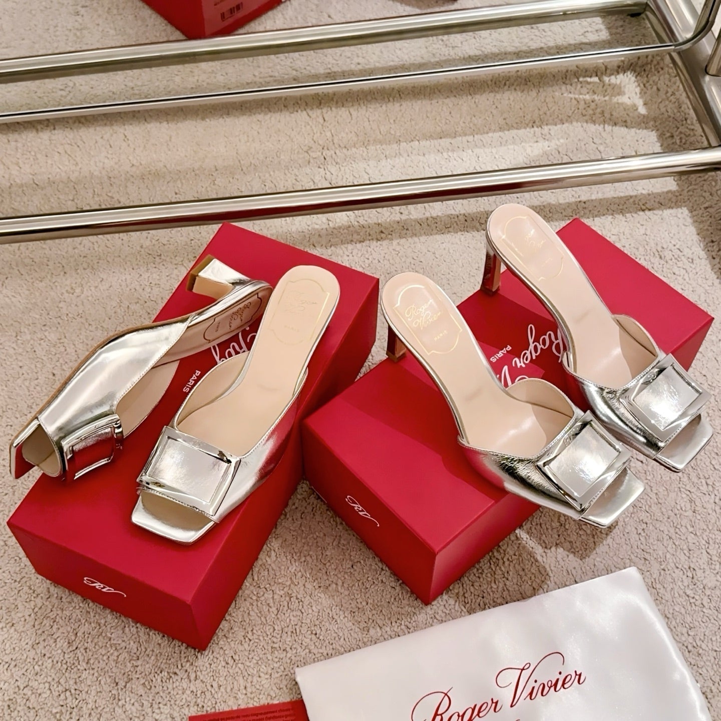 Viv Retro Modern Mules Silver Cowhide Leather 261719