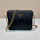 LARGE QUILTED FLAP BAG 23 IN BLACK RE-NYLON FABRIC GOLD CHAIN