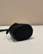 MINI BUCKET BAG 10 IN BLACK RE-NYLON AND SAFFIANO LEATHER STRAP